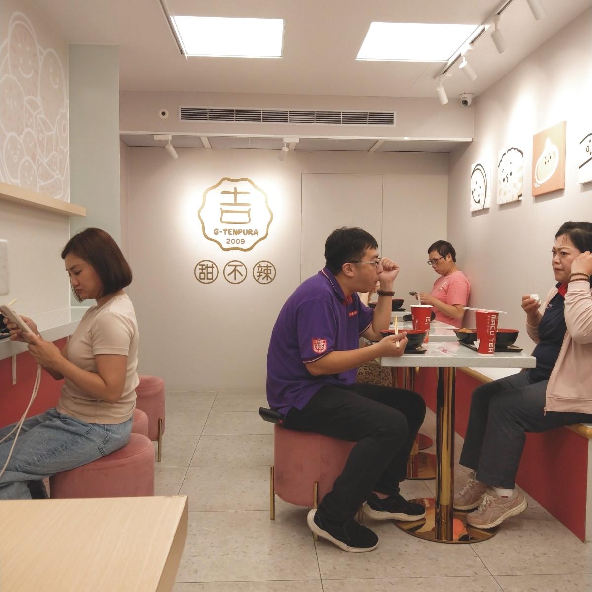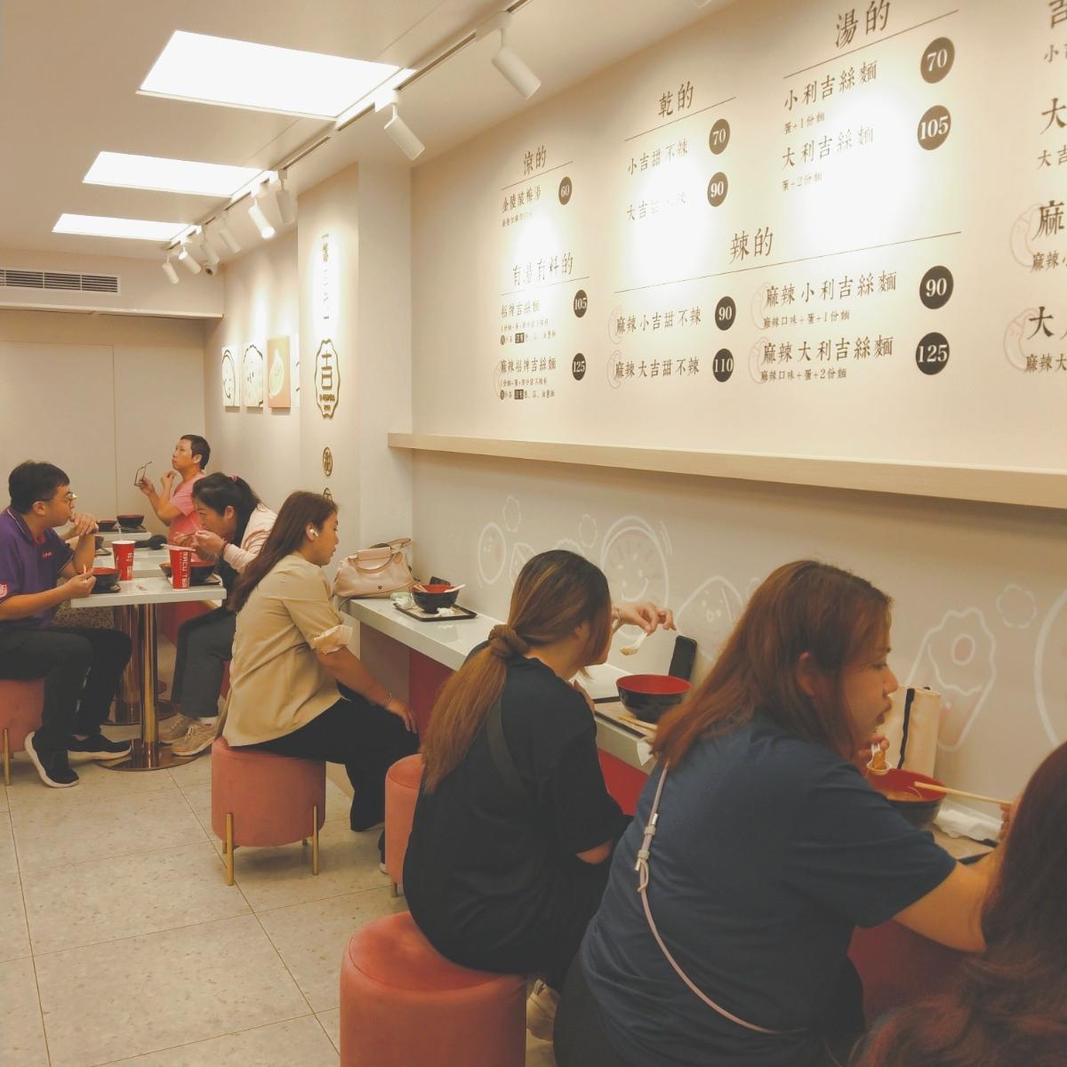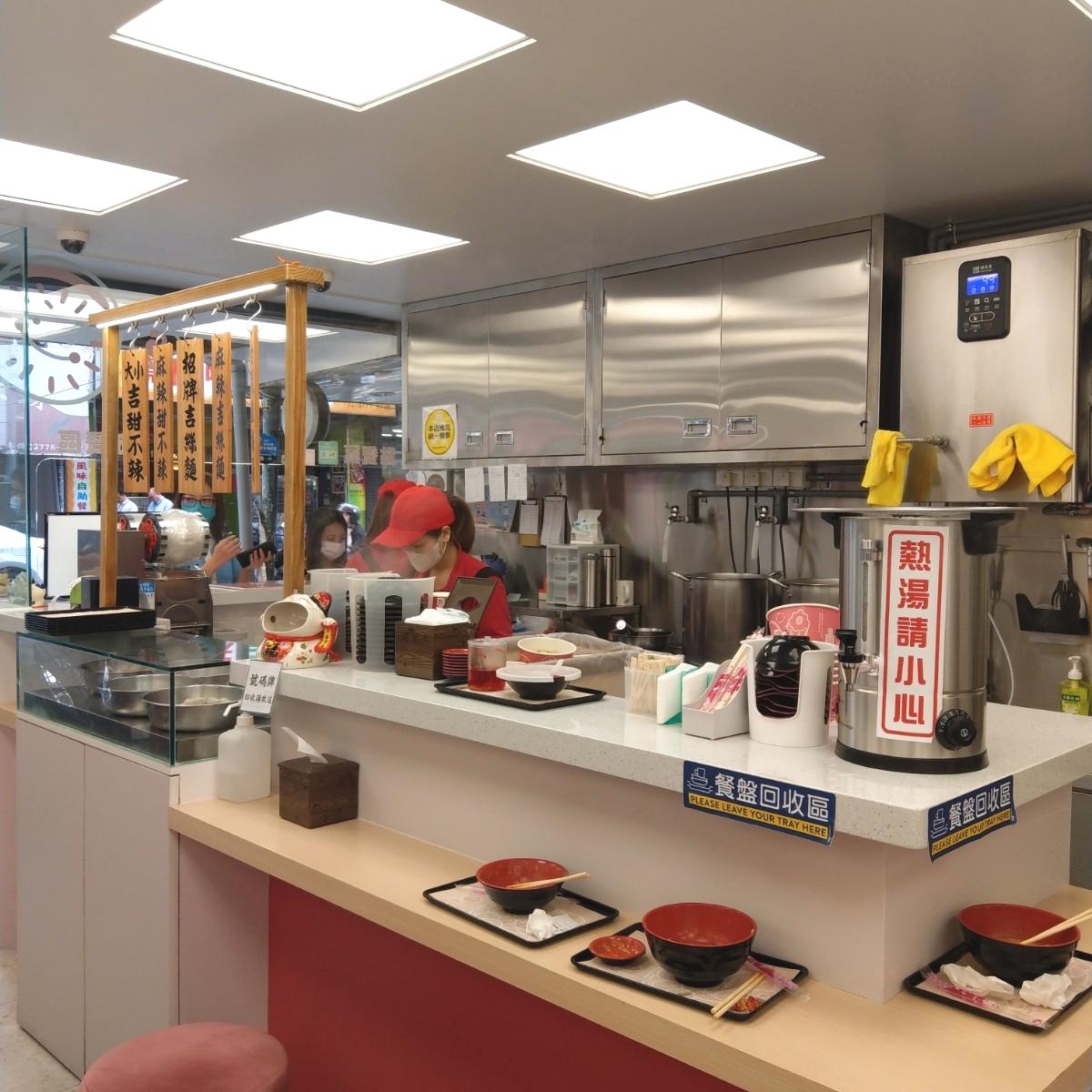 今天中午沒這麼餓,走到延吉街來吃這間外帶過很多次的吉甜不辣。幾個月前由對面搬家到新位置,這間是新裝潢的店面,原本的店面是復古紅色台灣味,新店面裝潢主色調為白與灰,搭上暗玫瑰紅座椅,很像韓系網美店。座位19個不算很多,尖峰時間要稍微等待。