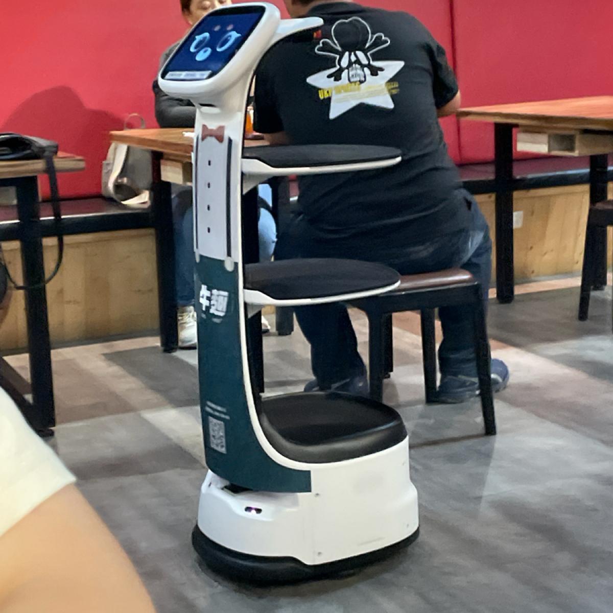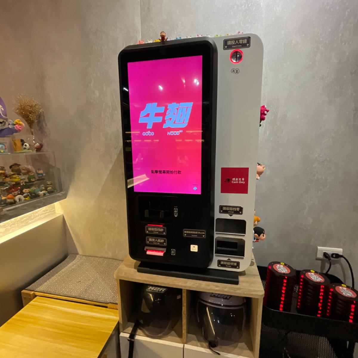用餐方式是QRcode點餐,點餐完畢要去櫃檯旁邊的機器現金付款,但我現金不夠詢問櫃台服務人員後他說可以轉帳(好險),免去出去找地方領錢的困擾。付款完畢會拿到一個感應器,震動的時候要去取餐區自行領取牛肉麵,餐具、醬料、水、飲料(需付費)也都是自助式,他們有個送餐機器人貓貓,會幫忙送小菜到桌邊,但我們沒點。