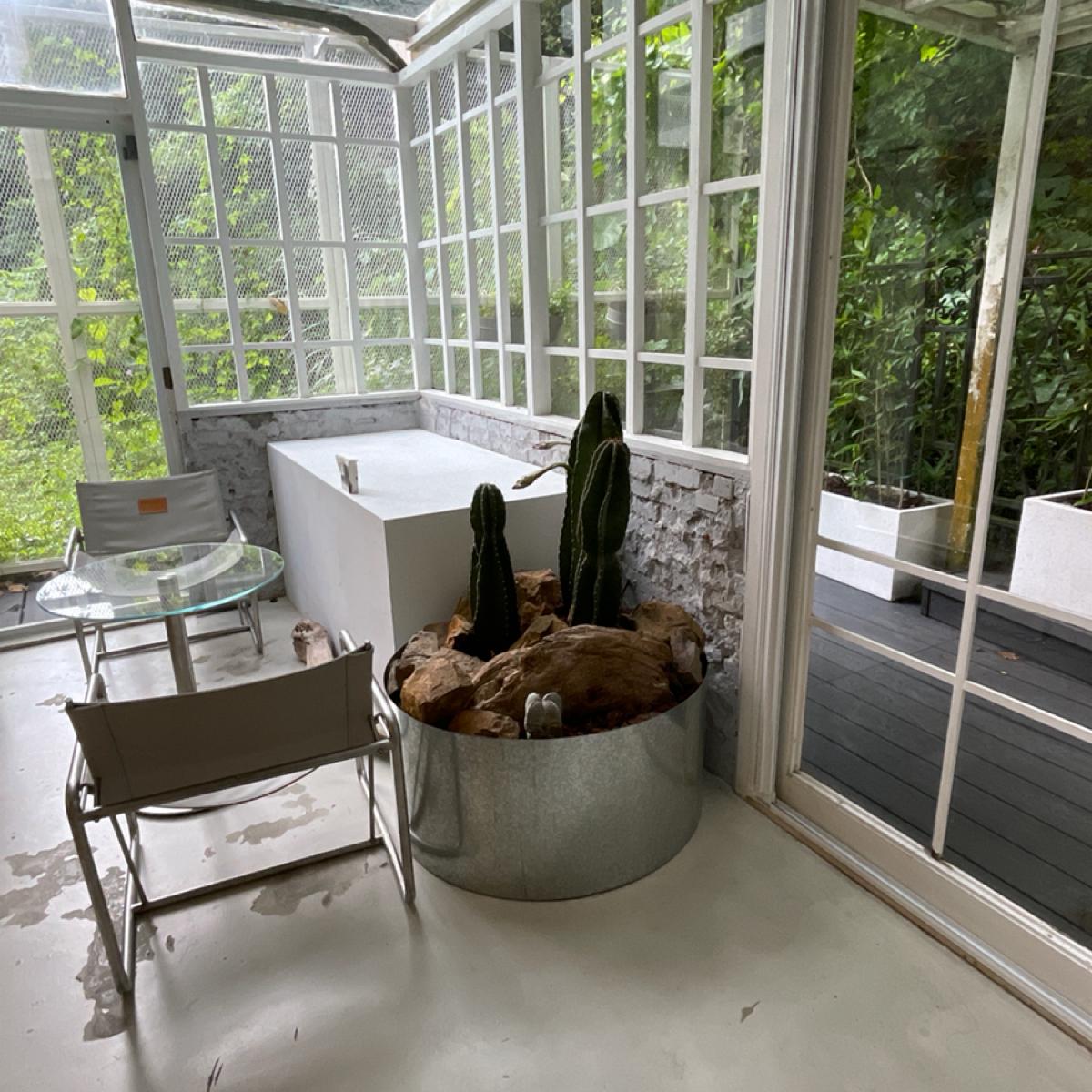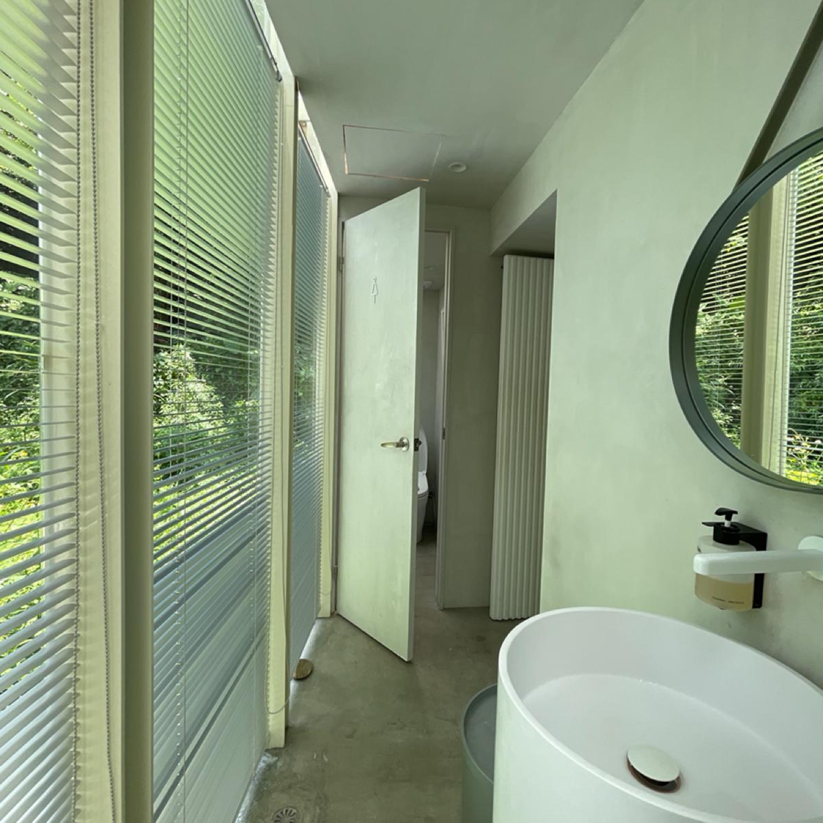 🔹裝潢風格引入自然的光線,充滿日式禪意與天然植栽。白色與灰質水泥主調,金屬不銹鋼點綴。