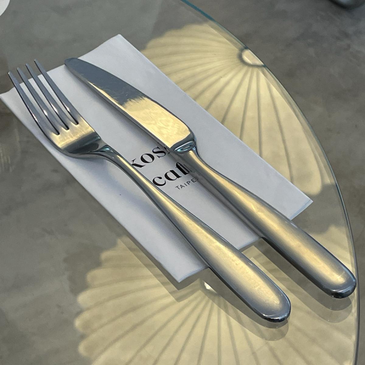 入店後服務人員會引導入座,並提供菜單。接著倒飲用水,水帶有檸檬的香氣。菜單紙張摸起來質感很特別,粗獷的觸感帶有塑膠的厚實的質感。因為低消一杯飲品,所以我們各別點了一杯飲料跟餐點