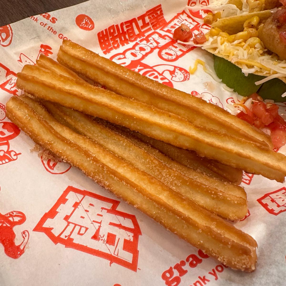 玉米餅🌮手捲都超好吃 莎莎醬在外面很難吃到~ 吉拿棒炸得剛剛好