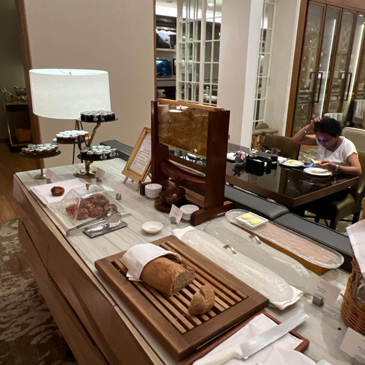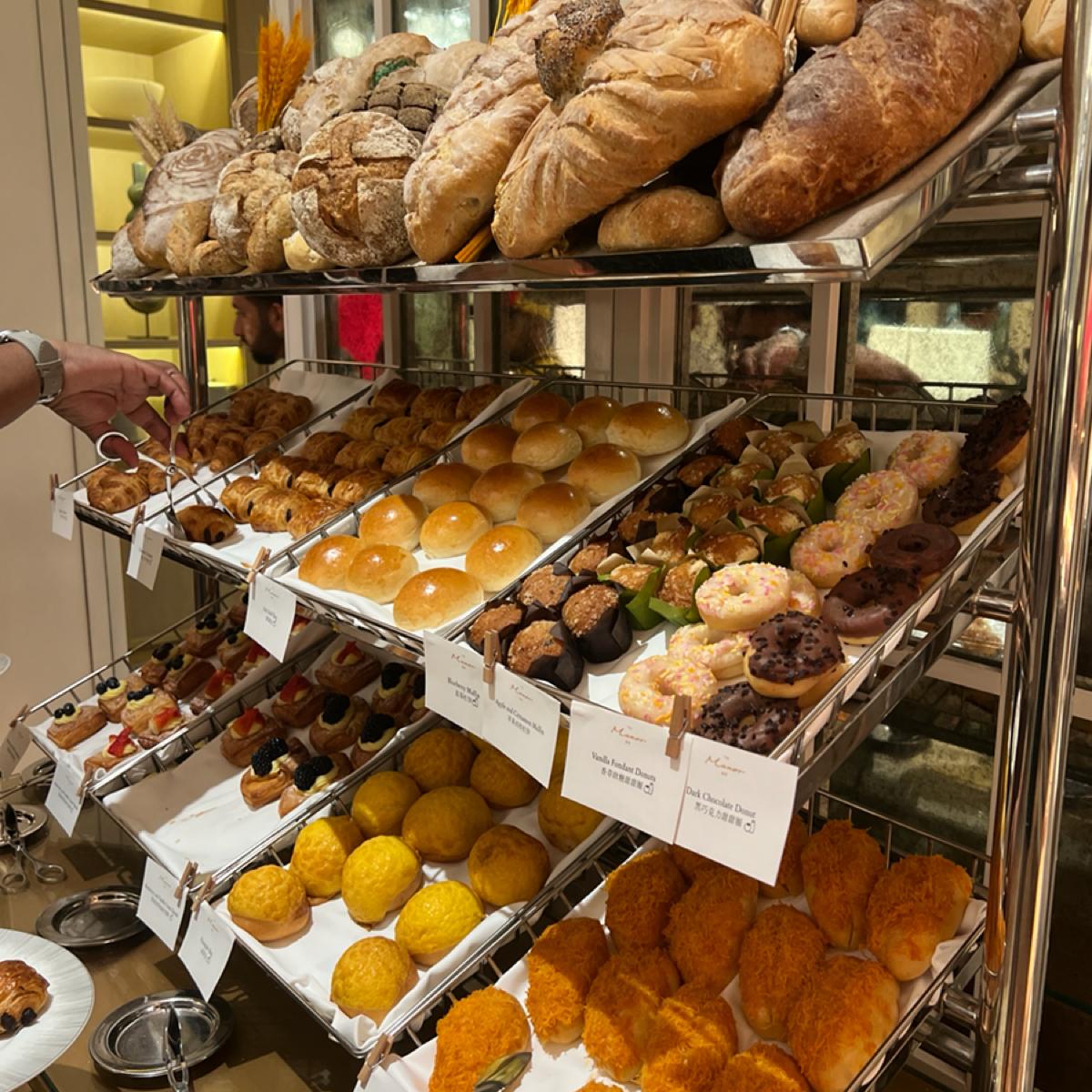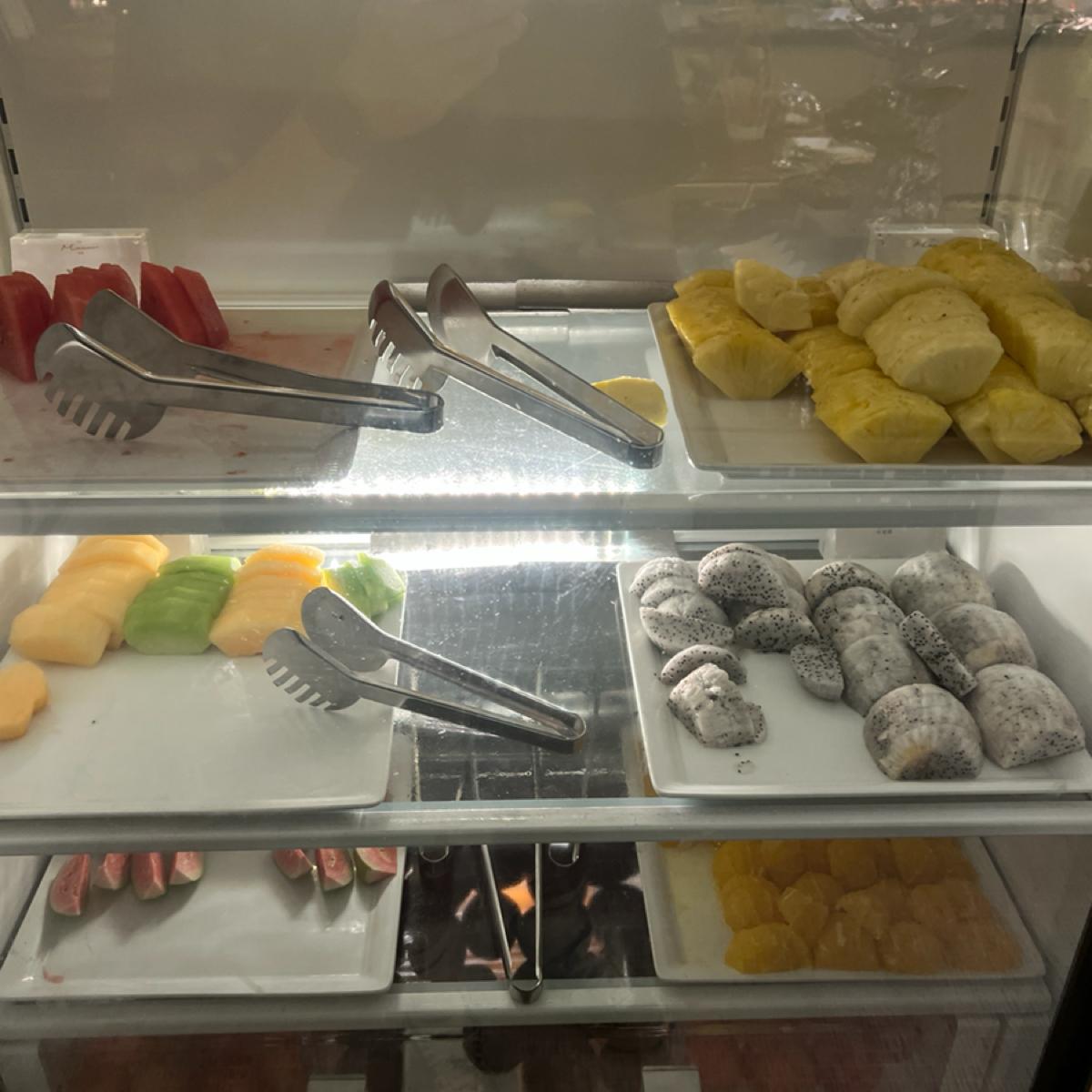 🍞甜點麵包櫃看起來很浮誇,丹麥酥、泡芙、可麗露、甜甜圈每樣都小巧精緻。優格配水果杯也不錯,吃起來清爽解膩🍓🍍還好有這杯,因為當天現場有一大團印度旅客,水果區被圍住,有人還直接徒手抓水果…看了實在不敢過去🙃
