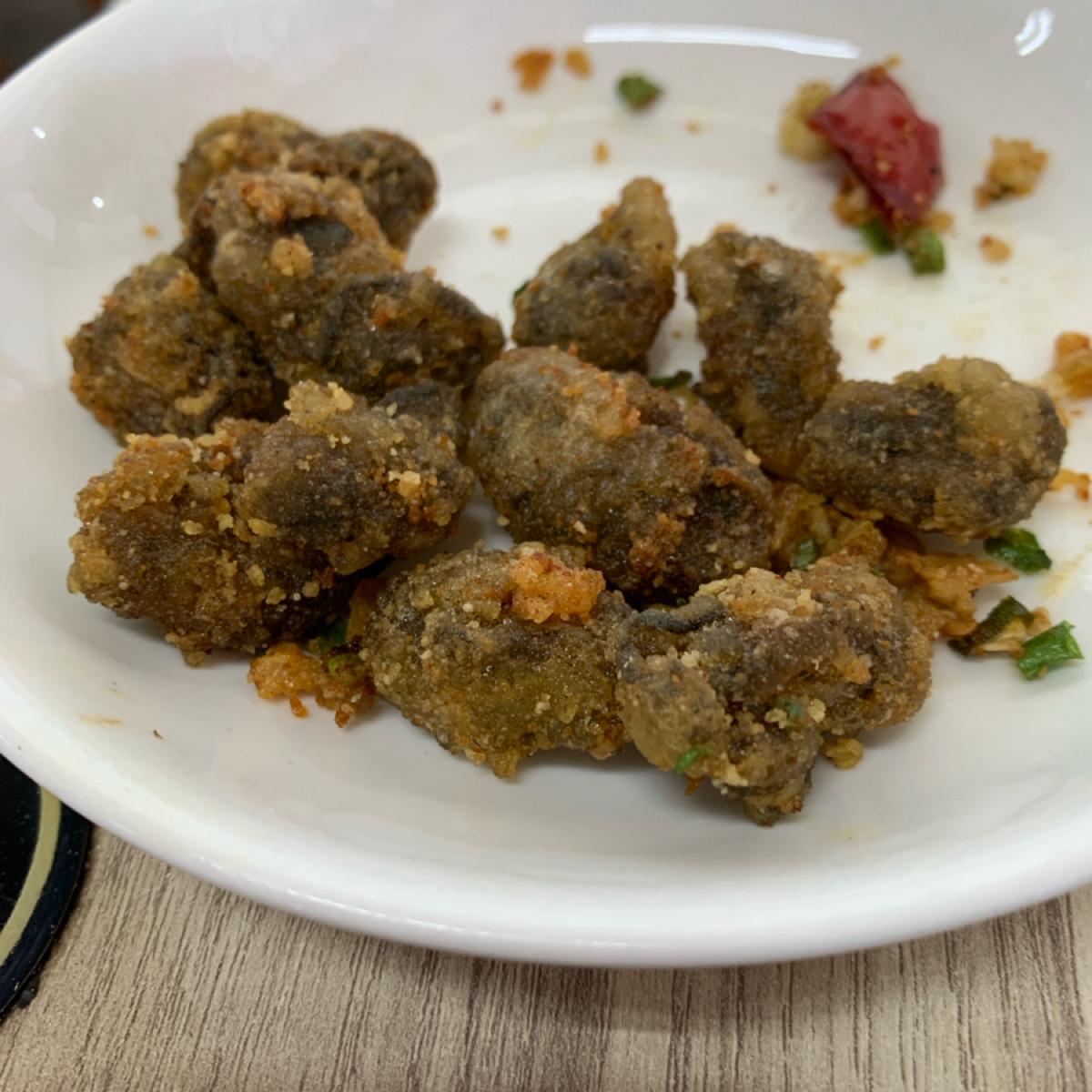 黃金蚵仔酥、生醃鮮蚵、五味鮮蚵都相當不錯(忘了拍照),但金沙鮮蚵則不推薦(如照片,顯然經過多次重複炸)。