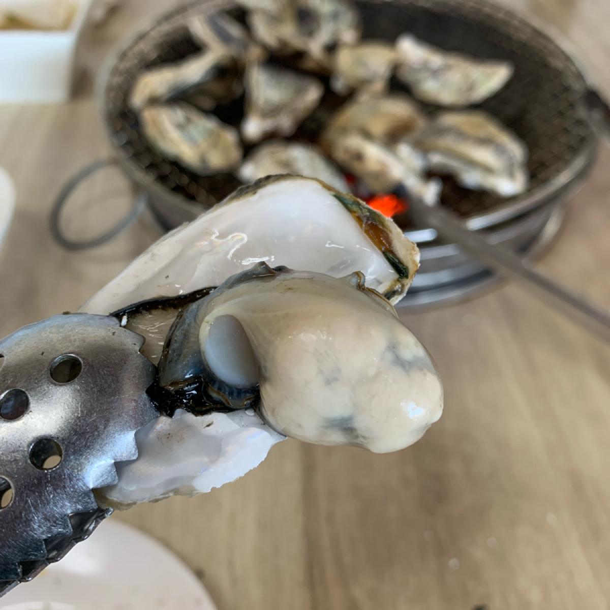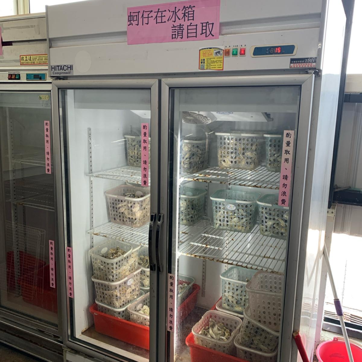 蚵仔在冰箱可自取,真.自在吃到飽!絕大多數蚵仔都是平常蚵仔煎的大小,不過我們意外拿到一小籃特別大的蚵仔,幾乎是生蠔尺寸了!不過當然還是得烤熟才能吃哦。