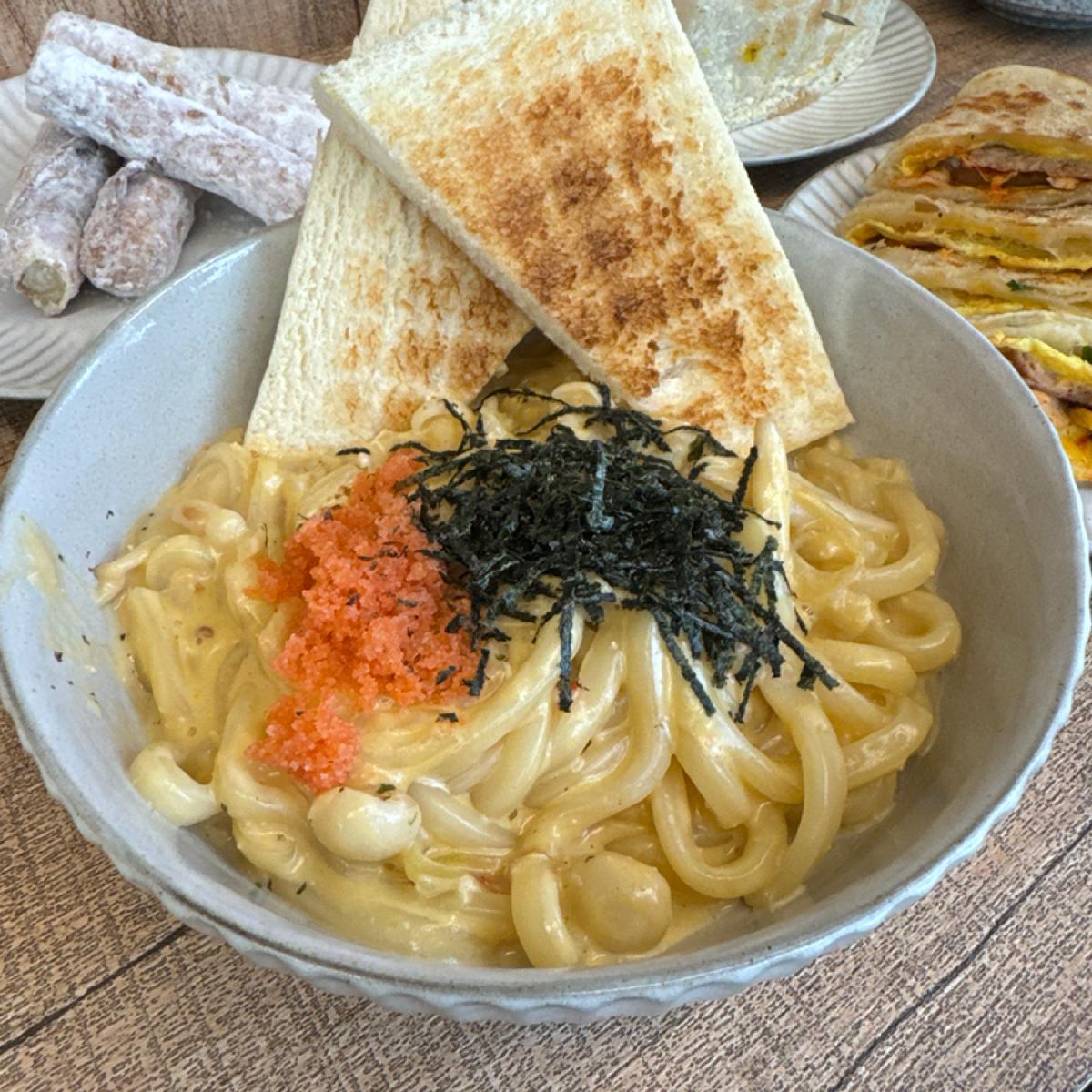 🗣️明太子奶油白醬炒烏龍麵💲160 🌝🌝🌝🌝🌜
