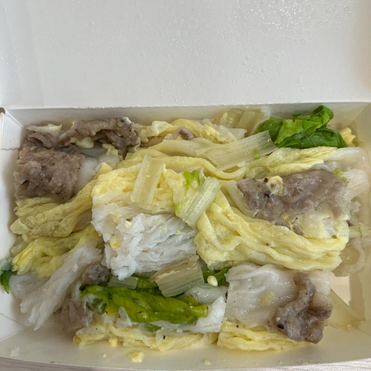 開在新建住宅大樓的挑高店面,週遭環境綠意盎然,招牌和裝潢顯得很陽春,沒有設計感。店名也是很像年輕人的點子。招牌是腸粉,50元滿大一盒,和之前吃廣式料理的腸粉不一樣,這個看起來捲捲的,增添了一些口感。蝦仁腸粉有幾個小蝦仁,是一般泡過東西的那種脆彈口感。鹹豬肉有點酸酸的但味道還不錯。因為腸粉一般是餐廳才吃得到,現在用銅板就能吃到是一個優勢。