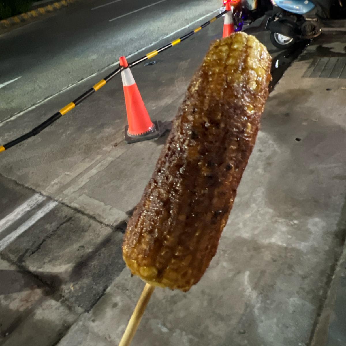 永大夜市的郭碳烤玉米,看到攤位的時候小有人潮,就決定吃試試,便排隊買一支來試試看。