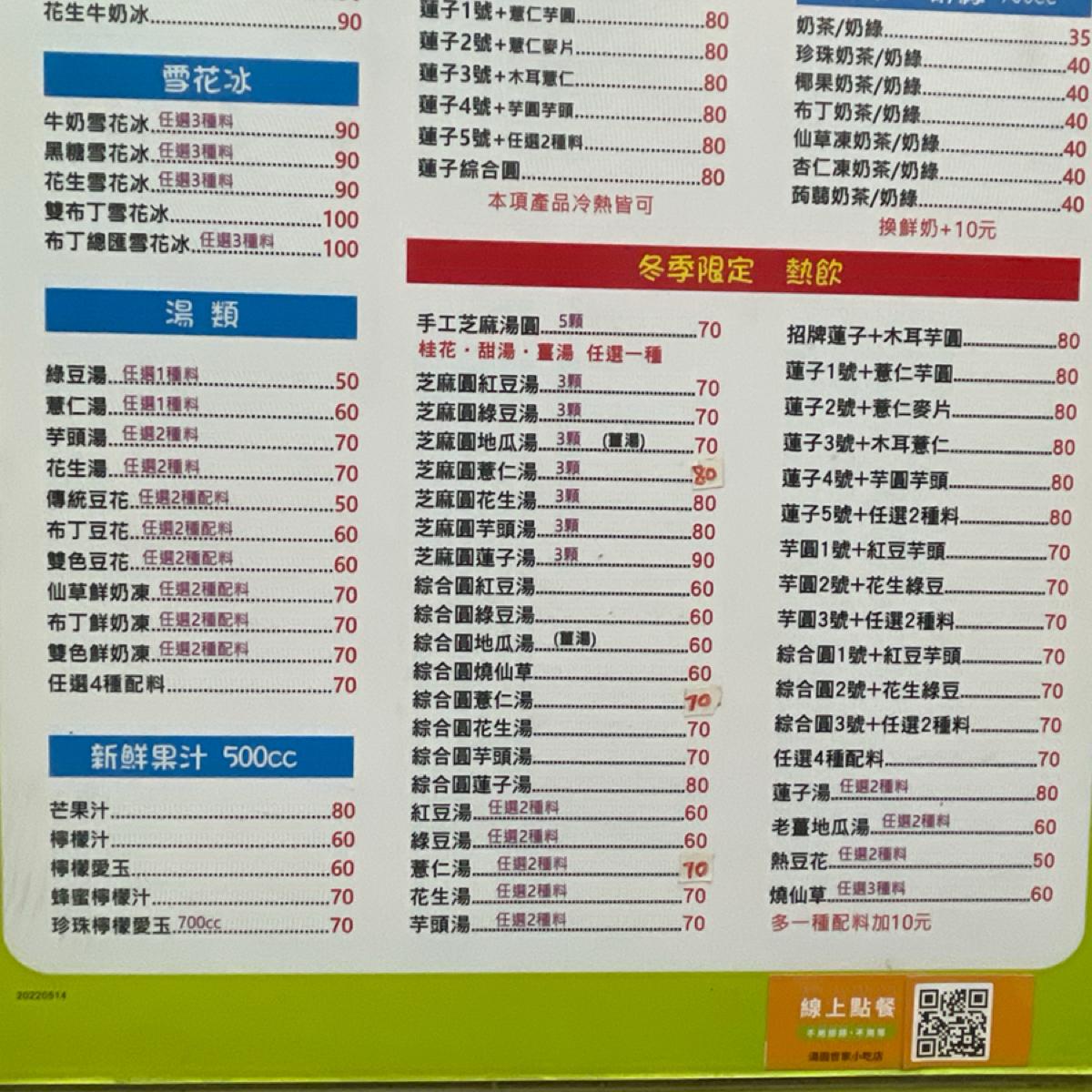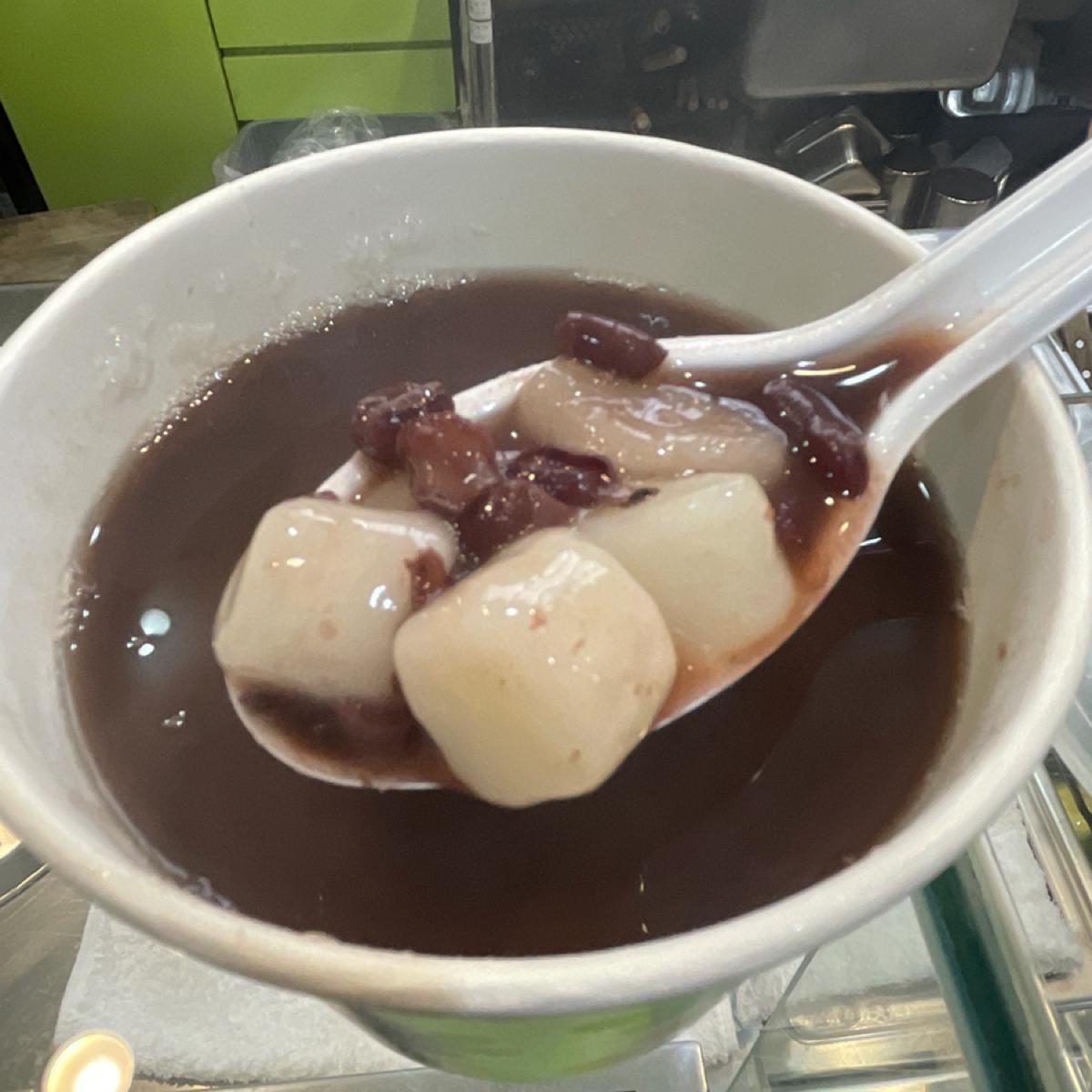 紅豆湯 任選兩種料$60 選了一份湯圓、一份芋圓地瓜圓,這邊的「圓」都不是圓形的,是不規則形的,蠻特別,我個人覺得口感偏軟,但還是有點嚼勁在;紅豆湯不會太甜太膩口,自己一人吃完一碗是ok的 口味還不錯,價格普普通通,不能說便宜,但在台北市來說也還能接受