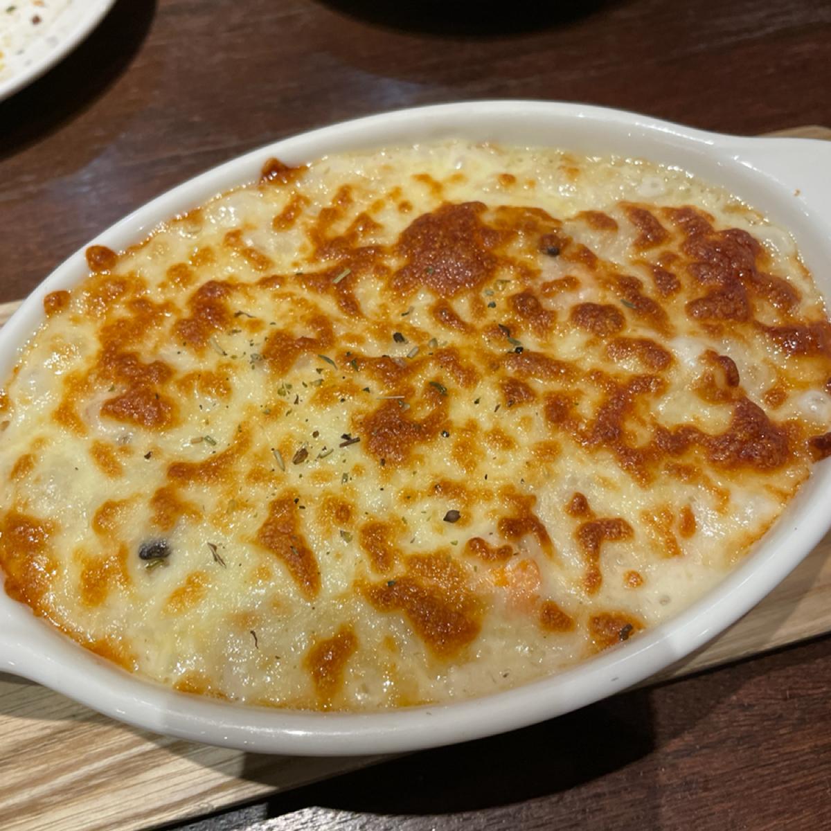大年初一都訂不到餐廳,唯一訂得到這間。 結果竟然還遇到披薩機器壞掉,不能點披薩🥲 所以只好點義大利麵和燉飯類。 這次我是點焗烤海鮮燉飯,焗烤的餐點很貼心會把殼類的東西都先幫買去掉,吃的時候就不需要再一直調掉,但其他義大利麵的還是要自己挑。