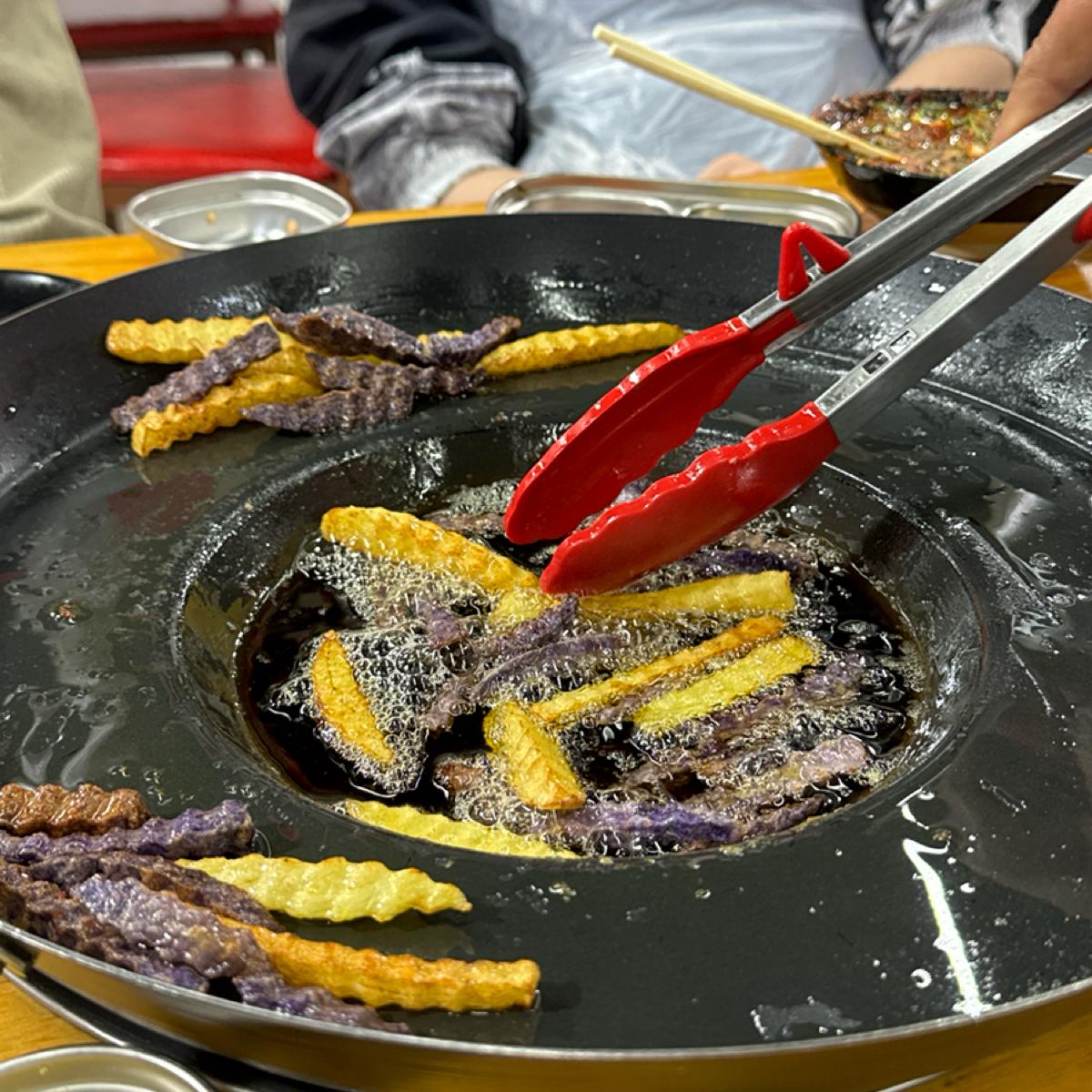 紫色黃色馬鈴薯混在一起下去炸
