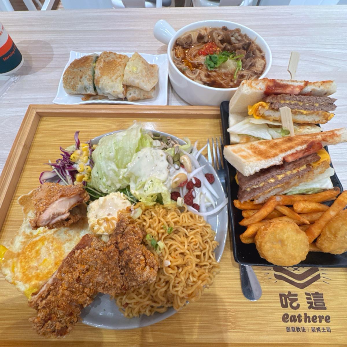餐點來說都很不錯👌但人員製作餐點較慢,可能新開店家,還在磨合,而且線上點餐,裡面訊號📶不是很好😅但因為中西合併的早餐店讓每個人都可以選擇自己喜好👏而位於桃園中路重劃區,附近都有很多停車場🅿️可以停喔☺️