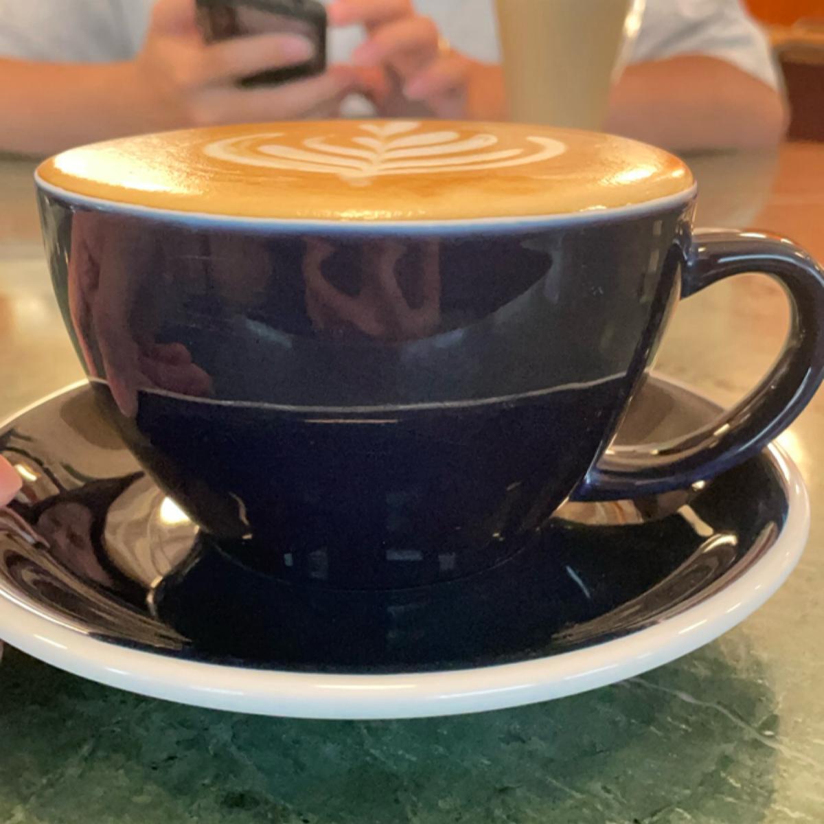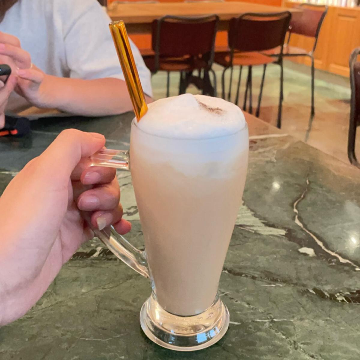 拿鐵顏色看起來偏深,讓我不免擔心苦調會較明顯,結果居然不會耶,味道雖濃郁但非常滑順,一開始會覺得奶味比較引人注意,但細細品嚐可以感受到咖啡豆是帶有一點酸味的,總之是一杯令人滿意的熱拿鐵,願意回購!