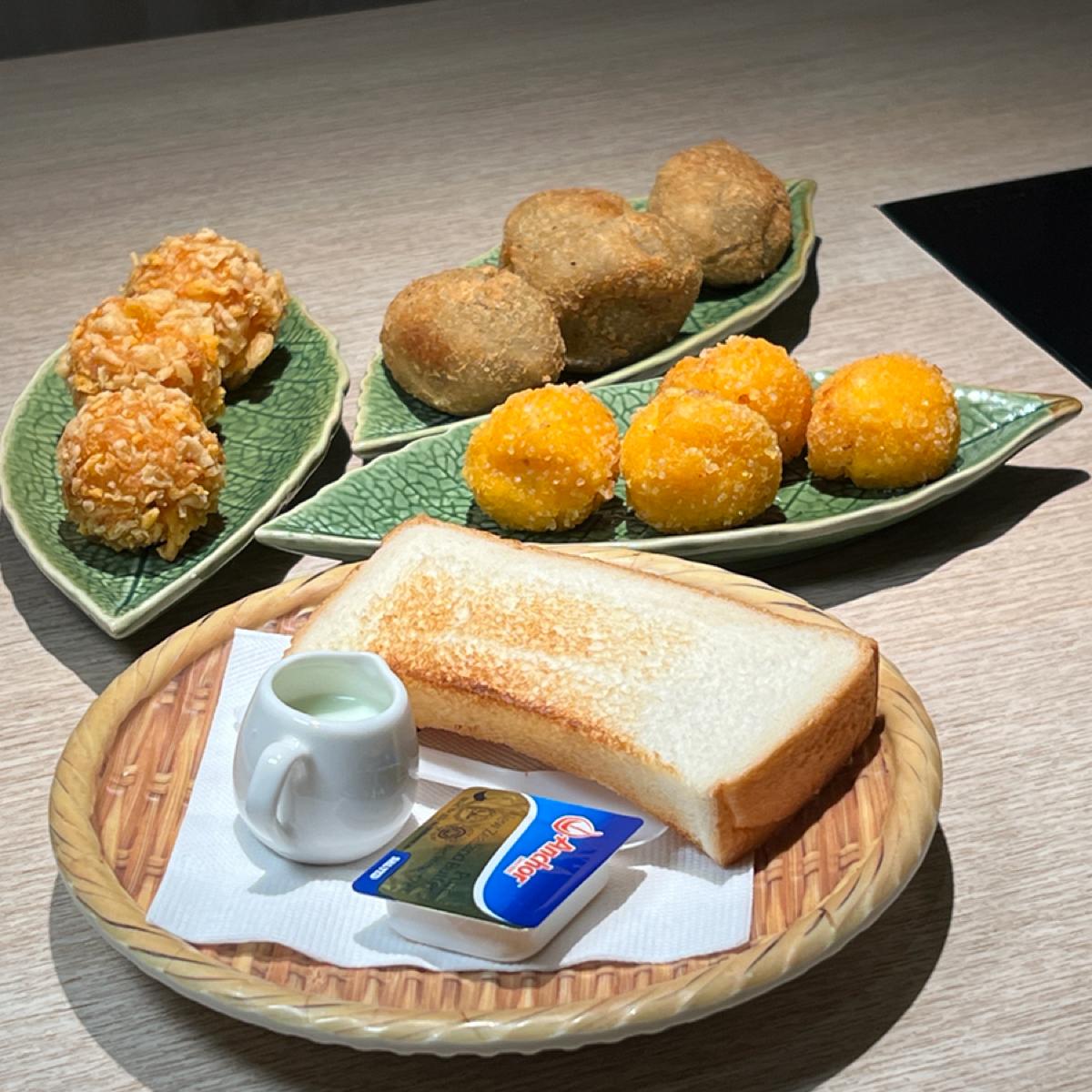 一片烤吐司🍞附上咖揶醬和奶油,個人是只有淋醬吃,吃起來很像椰子醬配吐司,搭配意外的好吃而且不會太甜膩~
