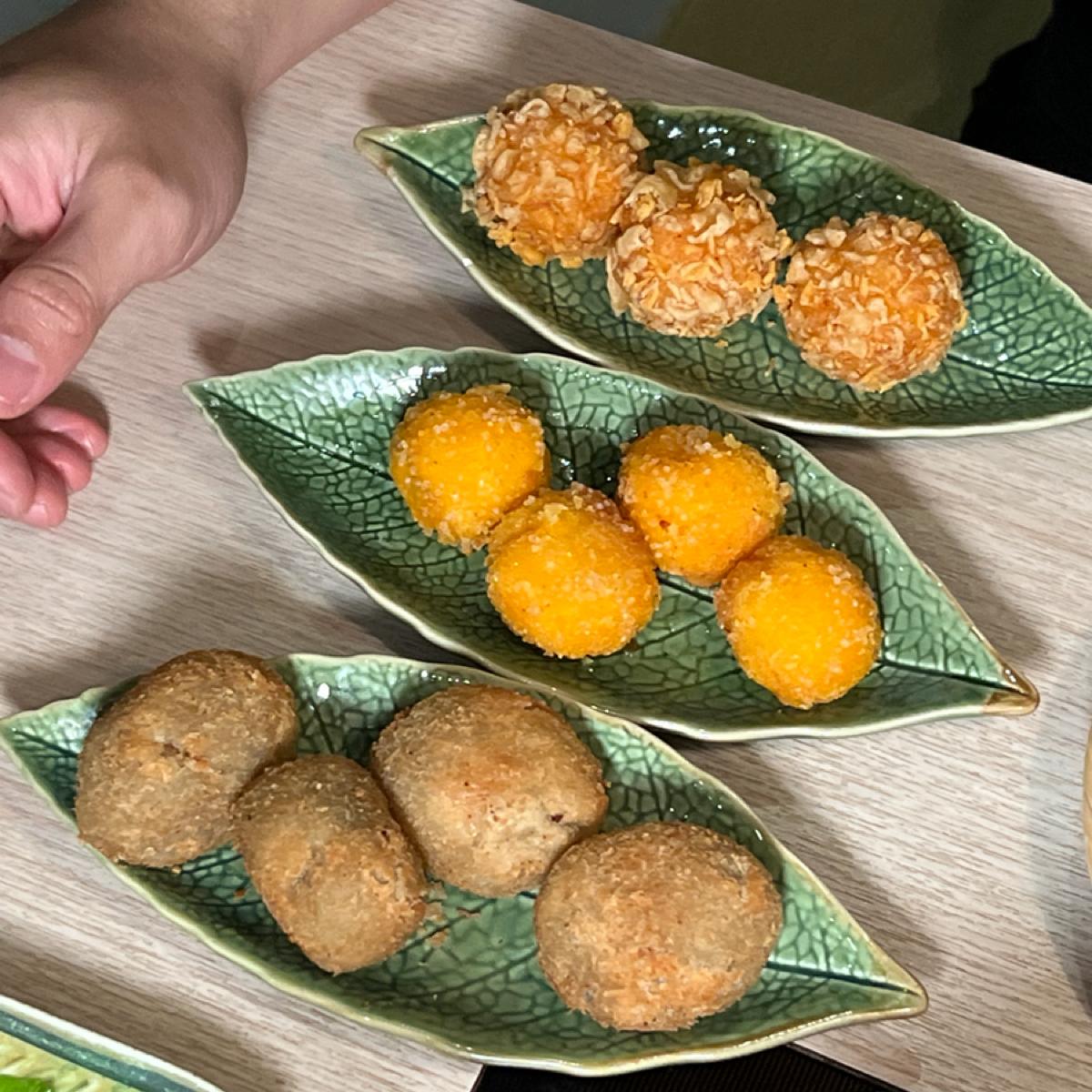 紫薯球、蝦球和起士球搭配而成,個人最喜歡的就是蝦球,外酥的蝦子外皮裡面包裹著流沙醬,罪惡但非常好吃😋