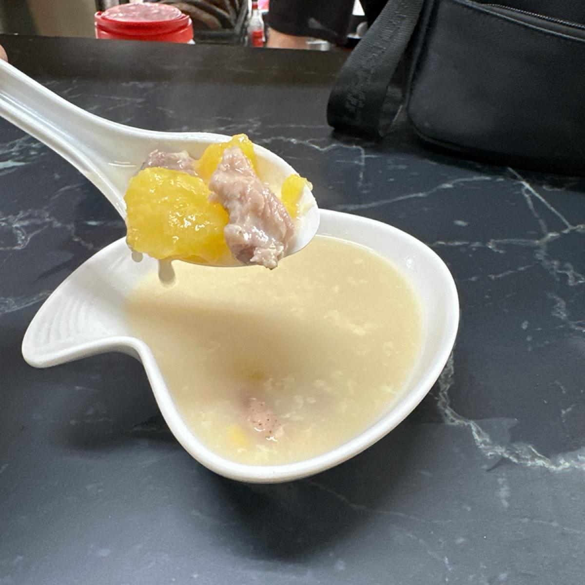 這次點了雙拼(雞加豬),不得不說我覺得比一些連鎖的品牌好吃,而且很便宜!雞腿外皮酥肉質嫩,之前點過牛排軟嫩好吃,特別的是玉米濃湯居然有蕃薯和肉塊,整體走吃粗飽路線,已吃過好幾次了,小社區裡的平價美食,滿意👍🏼