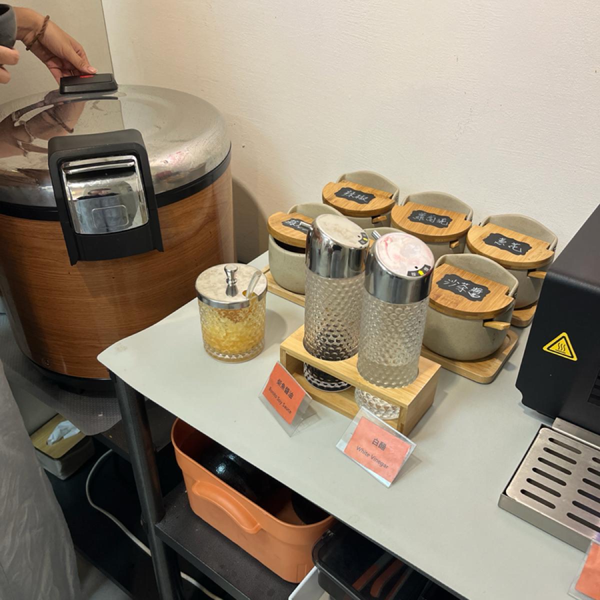 內用空間有自助吧,白飯、飲料與調味料齊全,飲料有提供蘋果醋及奶茶,甜點有新竹老牌814冰棒,口味選擇多,有紅豆、酸梅、芋頭等,懷舊感十足。