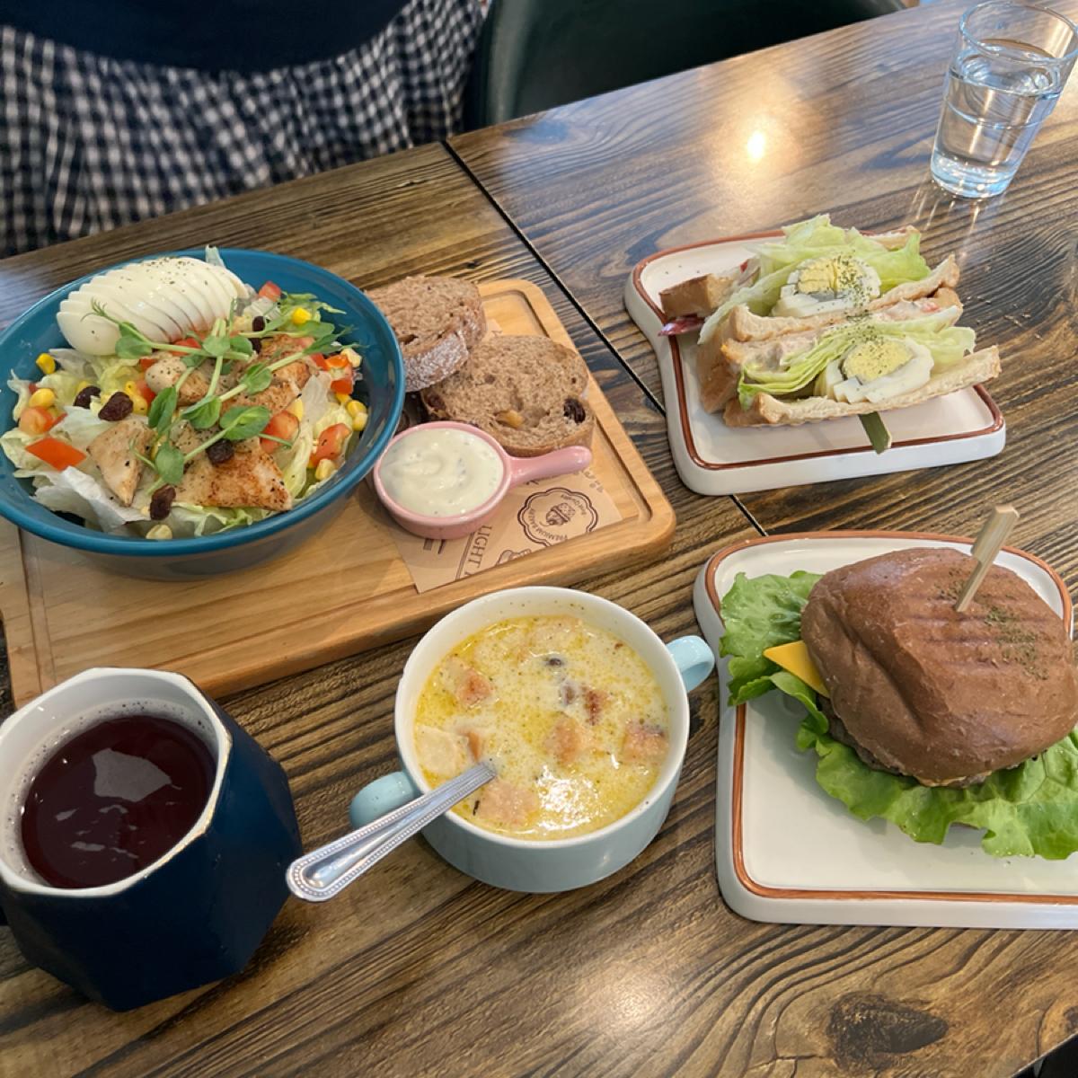 裡面雞肉、水煮蛋、堅果、玉米、生菜通通有,還附兩片麵包,