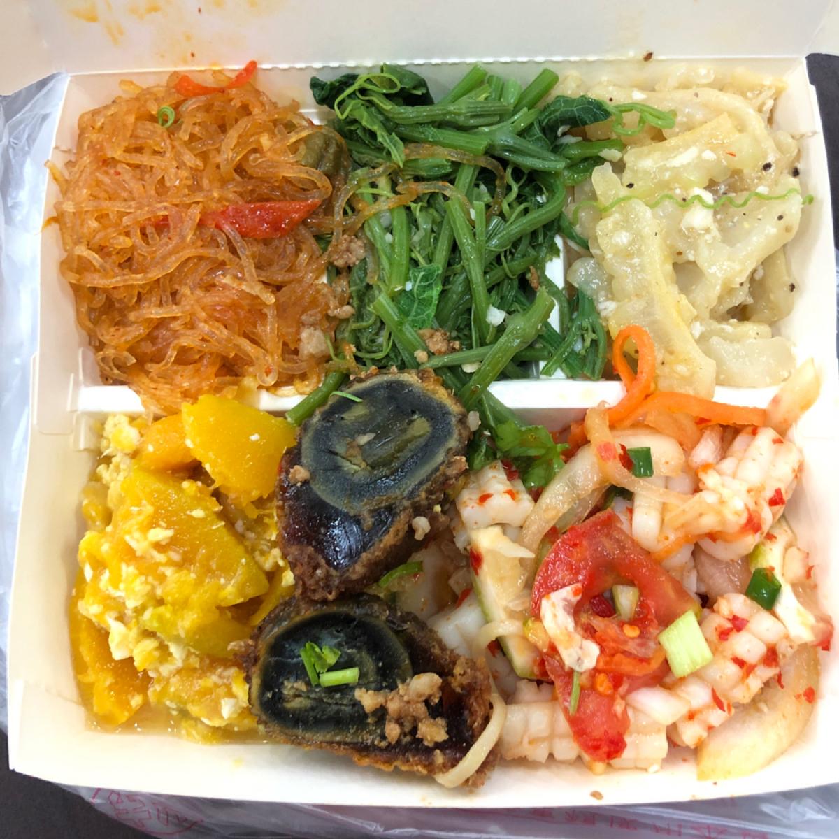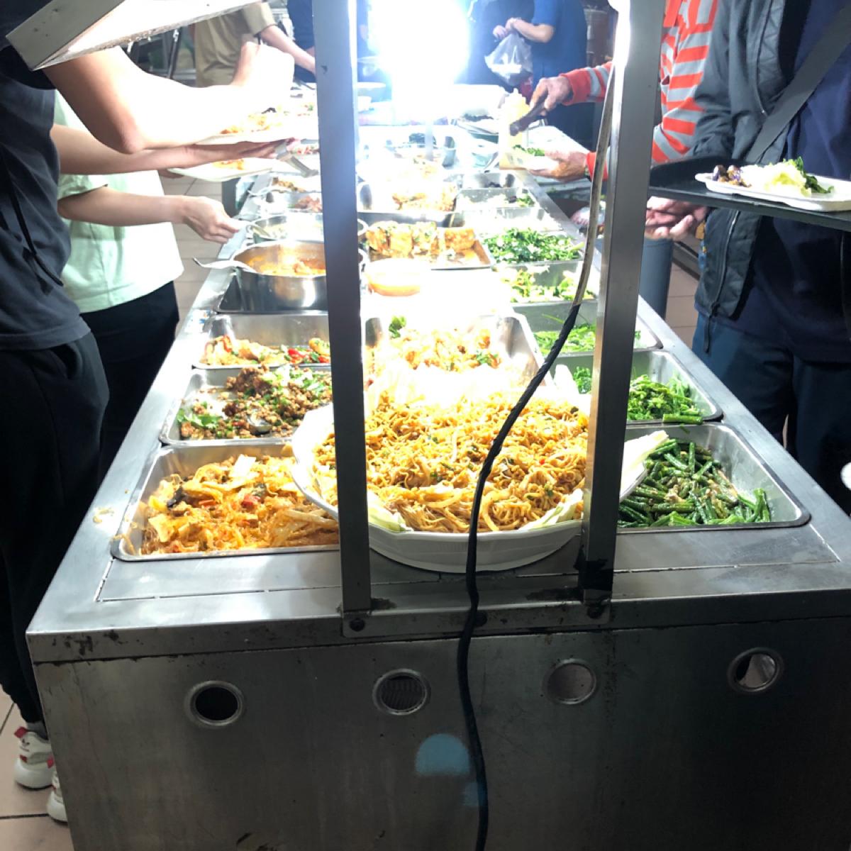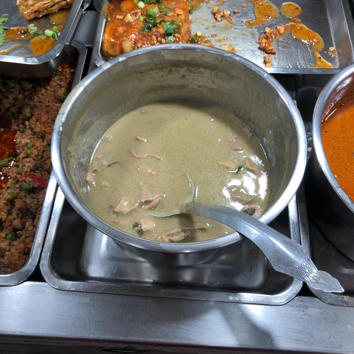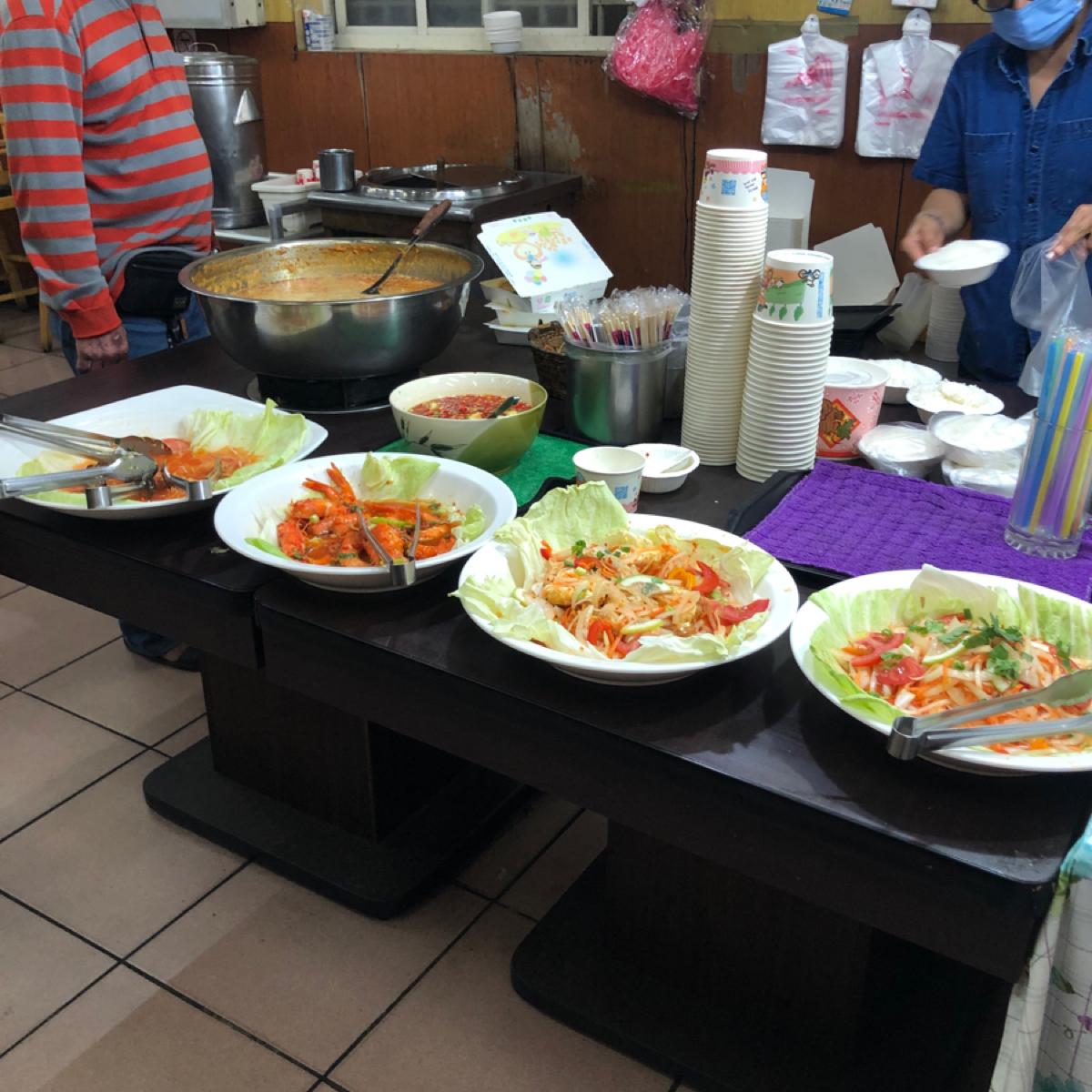 平時很少吃到可以自己決定份量的泰式料理,所以打著自助餐名號的泰式自助餐特別吸引我。用餐時間內部客人絡繹不絕,最吸引人的莫過於炒泡麵、月亮蝦餅、青木瓜絲、綠咖哩跟紅咖哩,可以選擇便當請老闆幫忙加菜或自己夾,結帳的地方另外有賣菇菇湯(辣),飯的份量如果想少一點可以要求半碗,因為老闆是用心算結帳所以很難預測價格會多少,無論是內用或外帶,都可以續碗湯或者紅茶。 另外餐廳有提供廁所,雖然狹小且潮濕,但仍然可供使用。