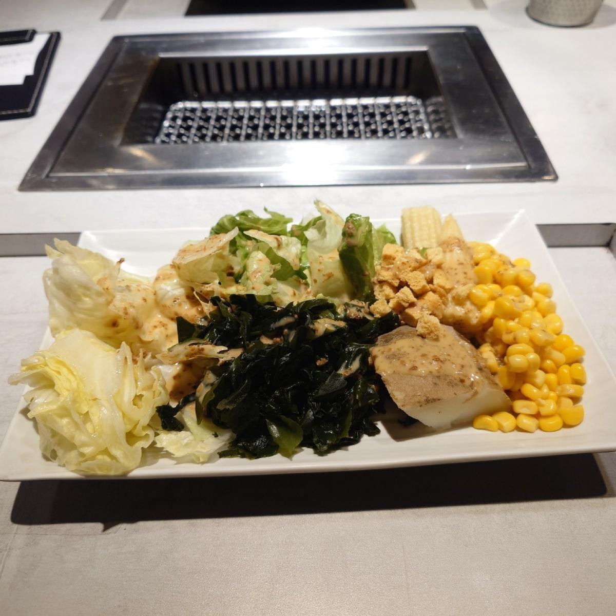 點一份盛合套餐(多份肉)+精選套餐(單份肉),價差會到一倍,但是加上前面加購和禮物,份量三人吃都很滿足,適時配合享用前菜無限吧,很飽喔