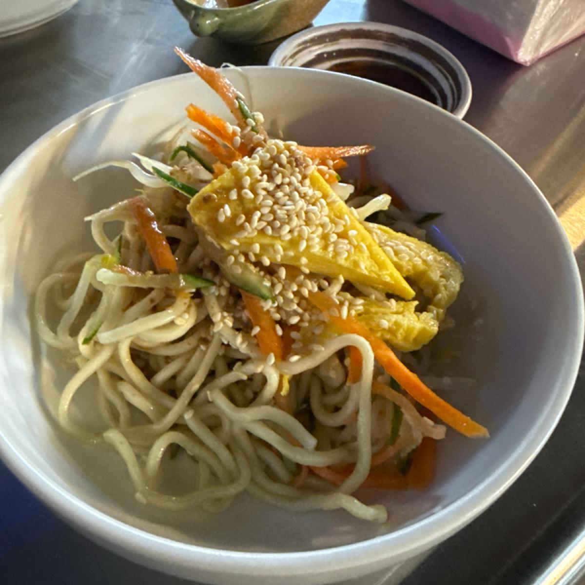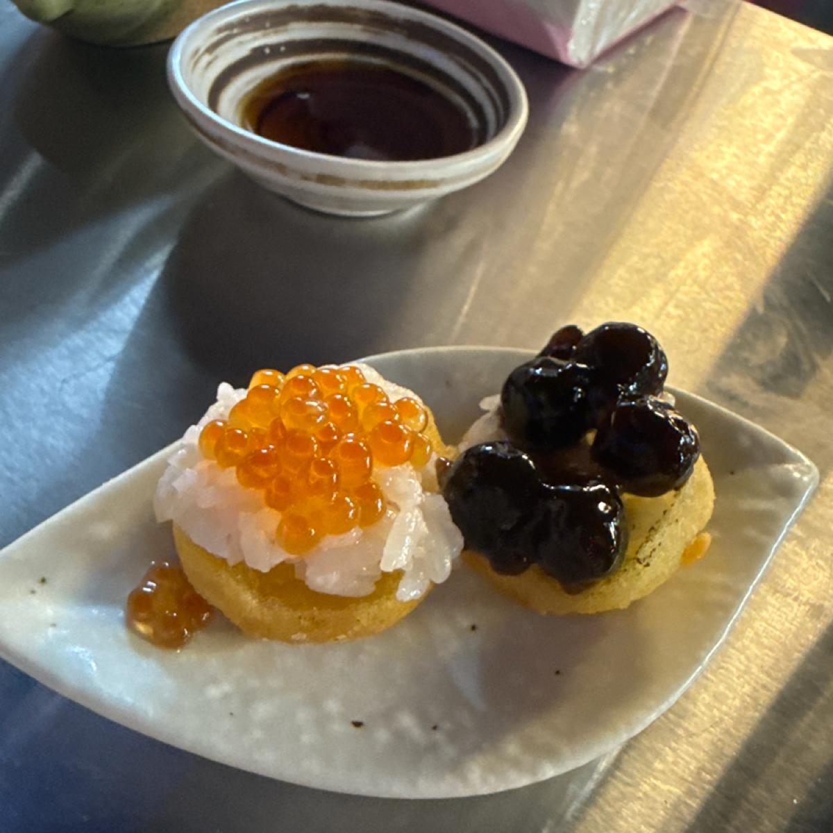 最後也有一份涼麵,份量不小(跟壽司比起來的話),以及有一份特別的的壽司點心。壽司點心的部分有搭配鮭魚卵還有波霸奶茶中的波霸,吃起來真的很特別,個人覺得很適合在秋天涼爽的天氣來吃吃看