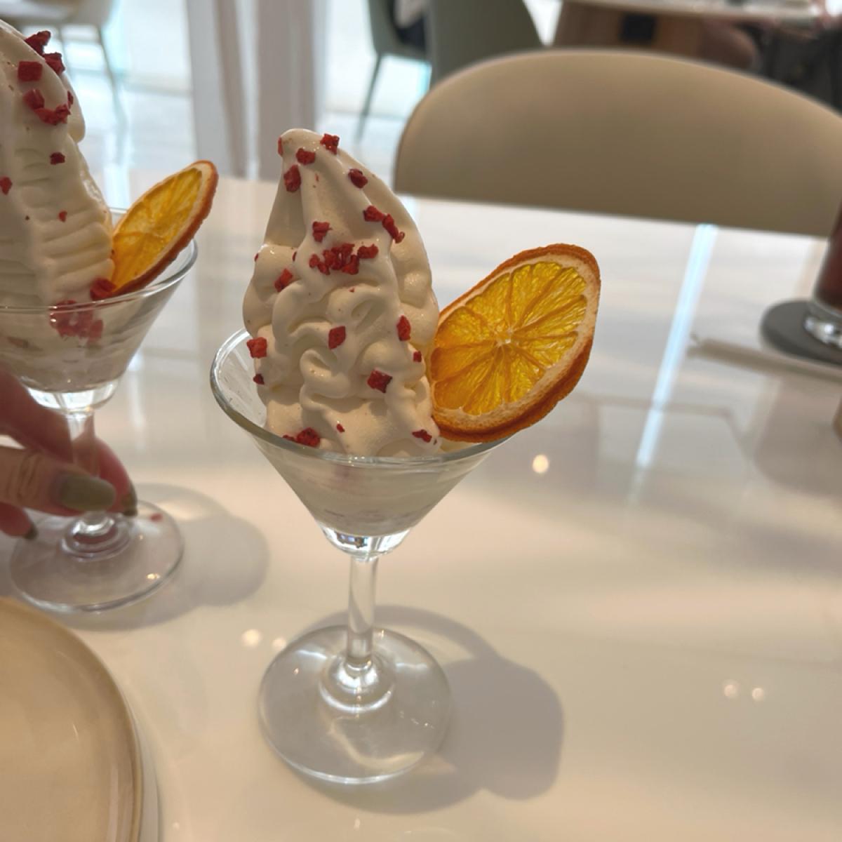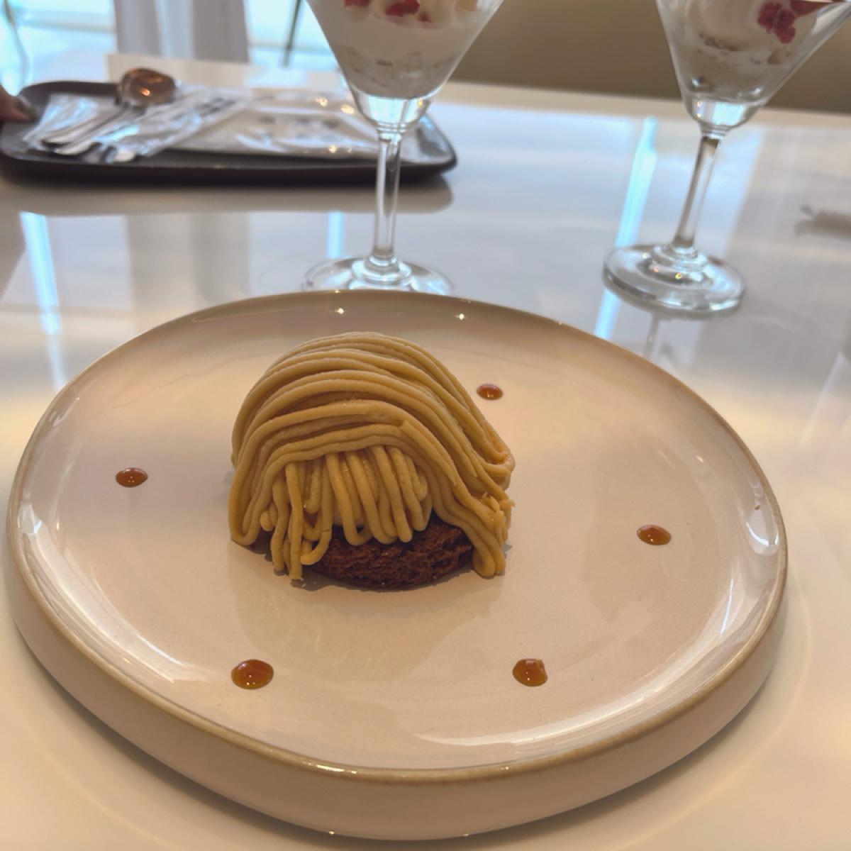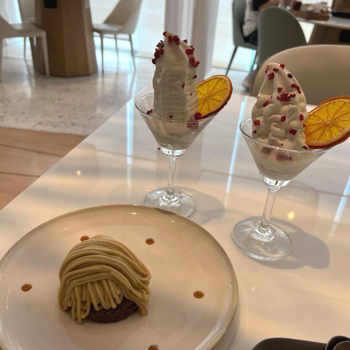 甜點部分推薦生乳霜淇淋,底下有消化餅、上面撒上草莓脆屑,再搭配乾燥柳橙,層次豐富且香氣迷人,是一個高水準的結尾;反之,蒙布朗甜度偏高,對於不嗜甜者來說可能稍嫌負擔。