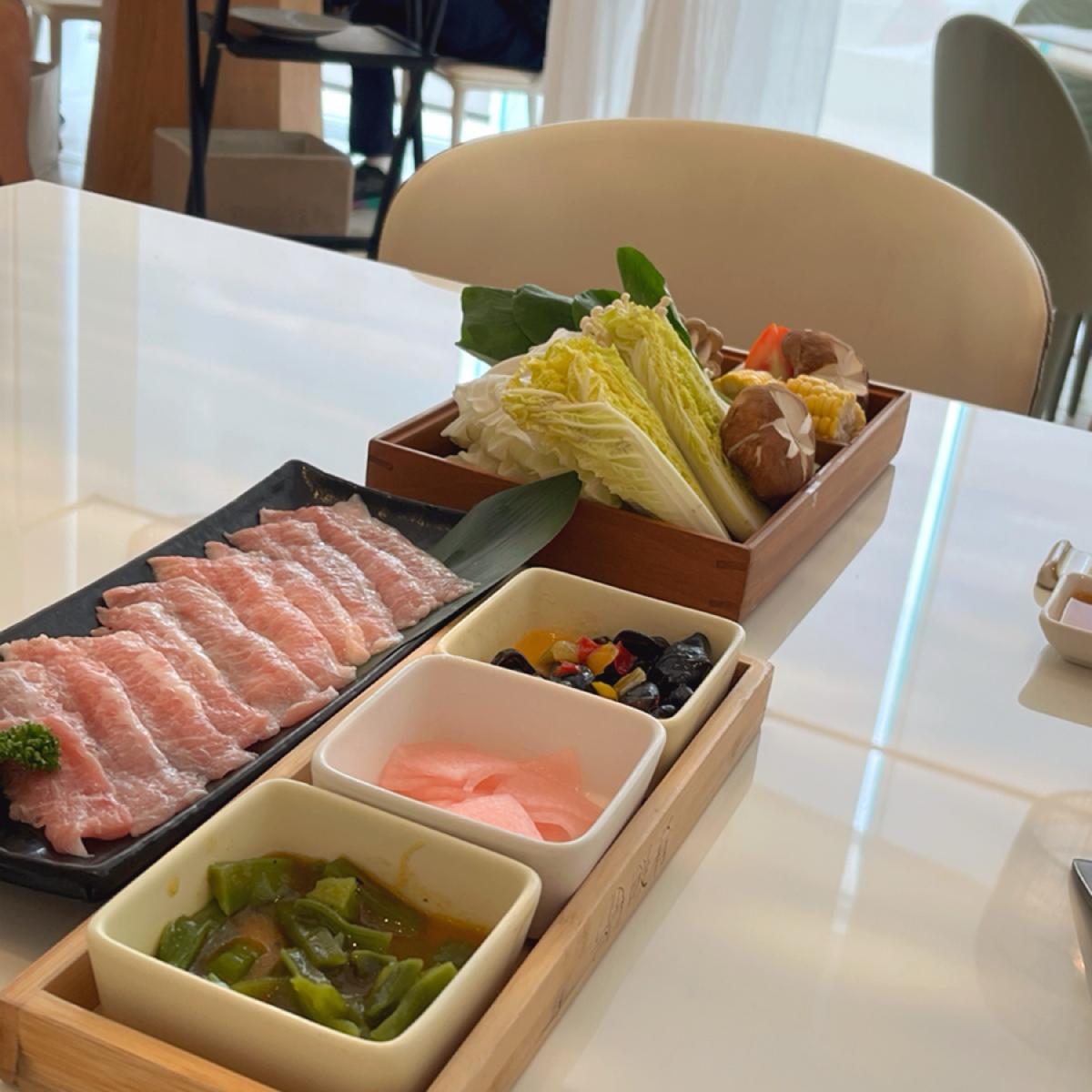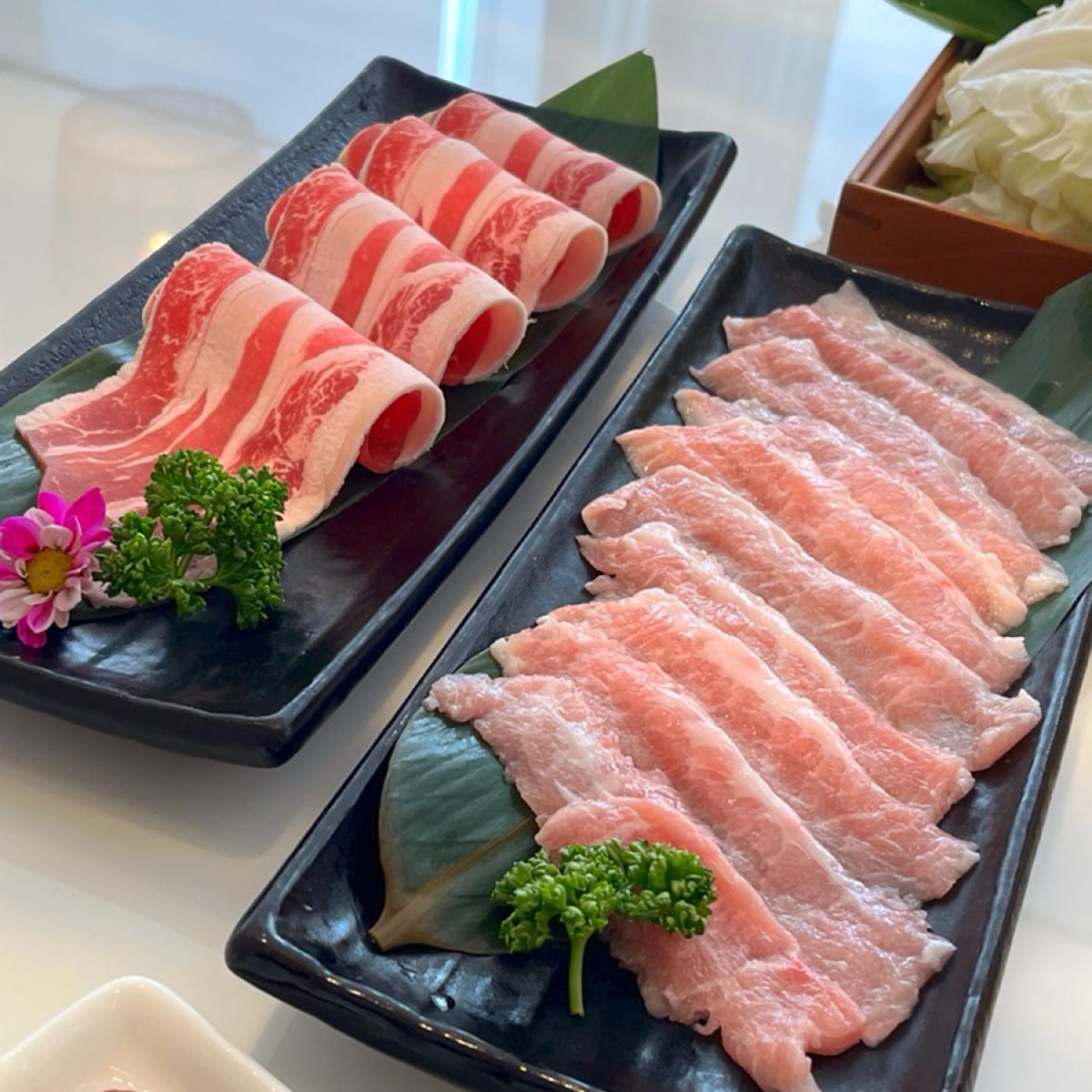 菜盤份量偏少,但可無限續加,而且有絲瓜、菇類、高麗菜等新鮮蔬菜,健康取向。肉品方面,雪花牛油花均勻,松阪豬Q脆不膩,表現皆屬水準之上。
