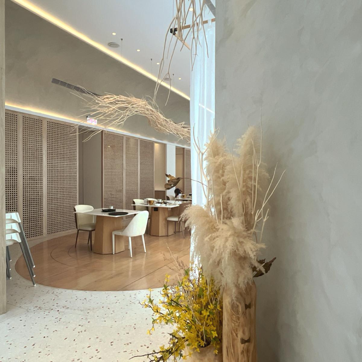 用餐空間寬敞明亮,有一整面落地窗與挑高天花板,採光非常好,整體氣氛乾淨舒適。此外,還有提供包廂座位,現場看到滿多小朋友,也有兒童餐具,非常適合家庭聚餐或朋友小聚。