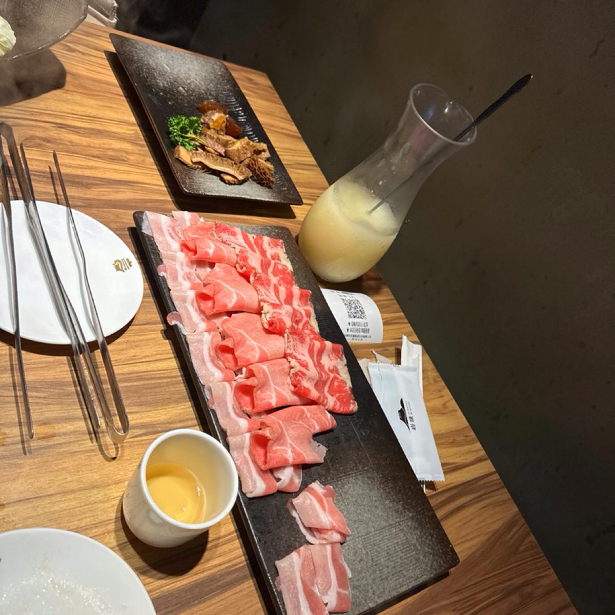 👍湯底本身裡面就有幾片豬肉片。