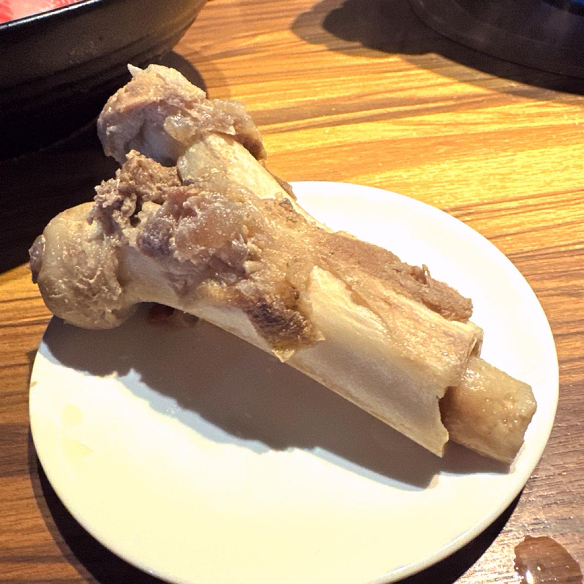 👍湯裡有一根豬大骨,撈起來時看得到完整的骨髓,從大骨中完整地「滑」出來,一口吃下去濃厚的精華伴隨奶香充斥在嘴裡。