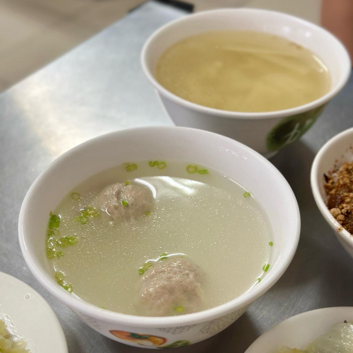✅貢丸湯:添加些許芹菜的純粹貢丸湯。味道不會過重,很單純的味道。貢丸Q彈。
