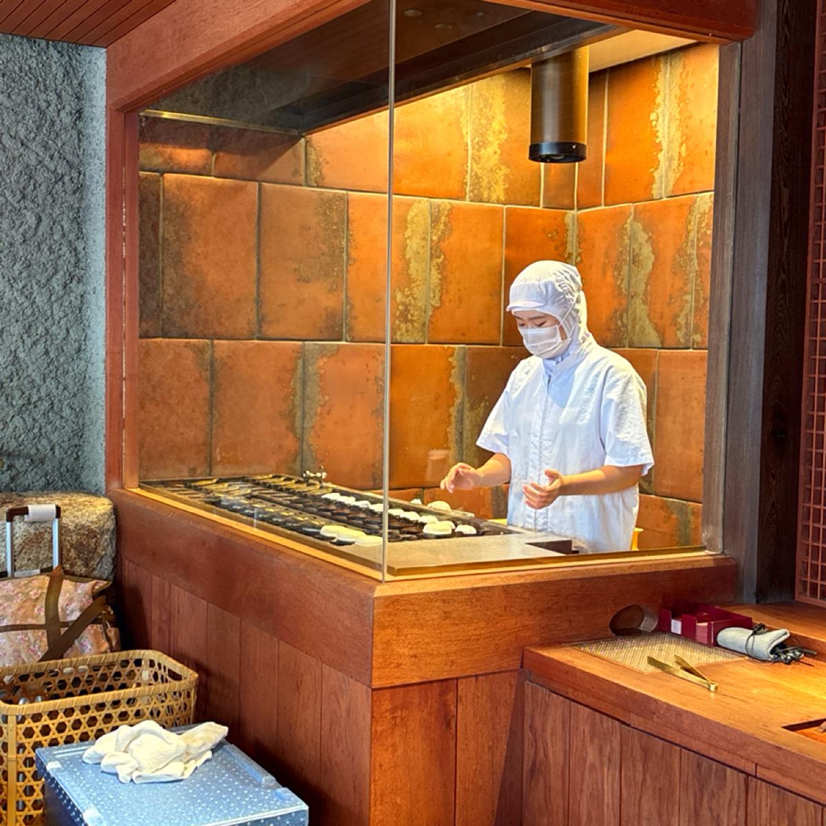 雖然店面看起來走低調奢華風,但梅枝餅的價錢和其他店都一樣是150日圓。雖然名字有「梅」,但成分裏沒有用到梅子😂 使用日本糯米和北海道紅豆內餡,現烤出爐表皮微脆、內裏Q甜,有種古早味,感覺每天吃都沒有問題!