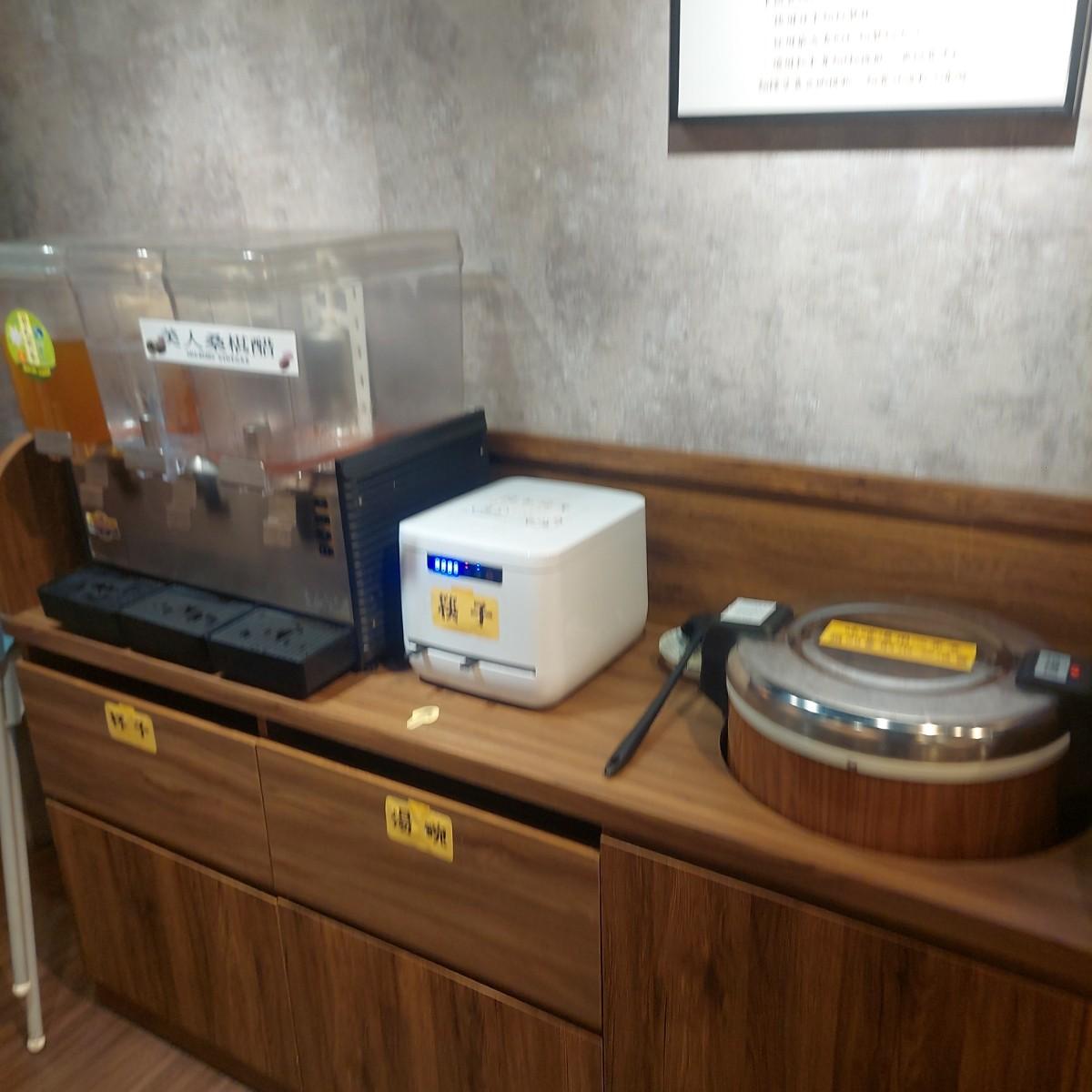 店家自助吧有飲料與味噌湯可自由取用,味噌湯品質不差,飲料當天是無糖茶與果醋,意外的高成本,吃飽之後來一杯,還蠻去油解膩。