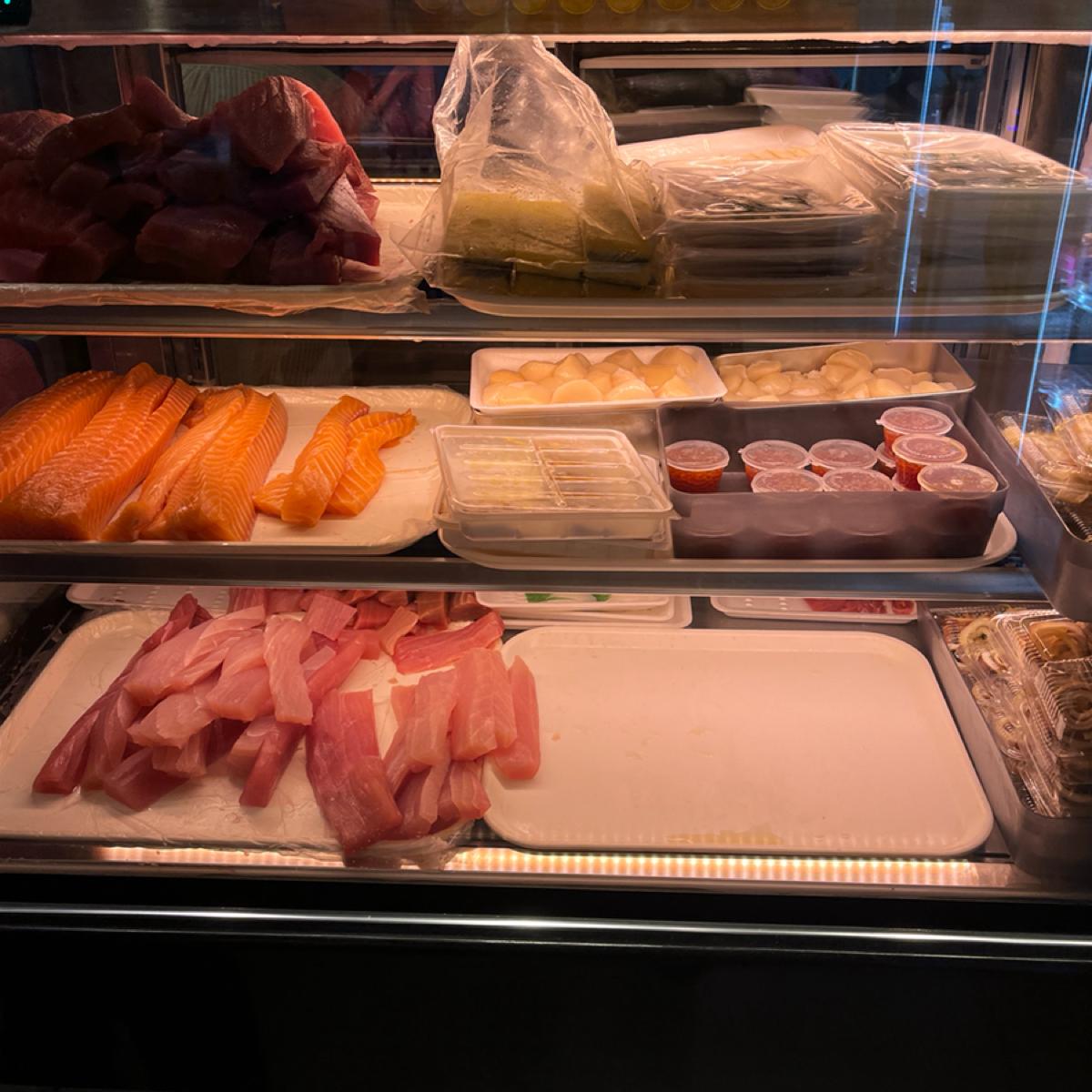 如果是以觀光區的生魚片來說,我覺得並不貴。點法是選擇你的預算,然後要哪幾種魚,他都可以幫你搭配,如果不要全挑鮭魚的話,200-300就可以塞滿一盒生魚片。以肉質的口感來說鮭魚鮭魚跟鮪魚都還滿好吃的,油脂適中。不過旗魚就不推薦,因為我吃到的是帶筋的,後面非常難咬,而且影響口感。