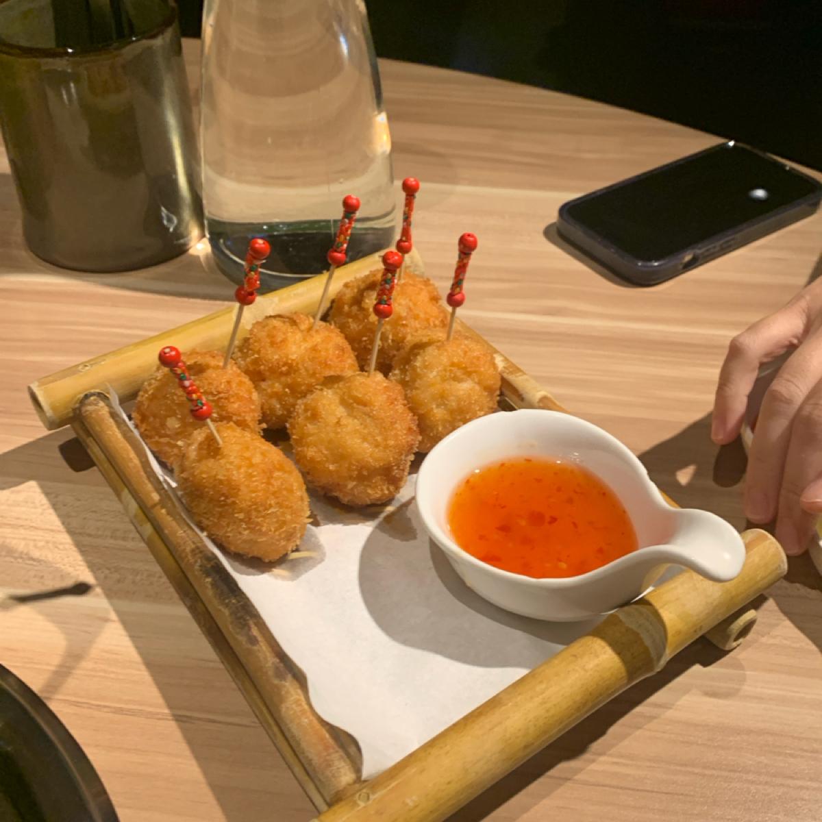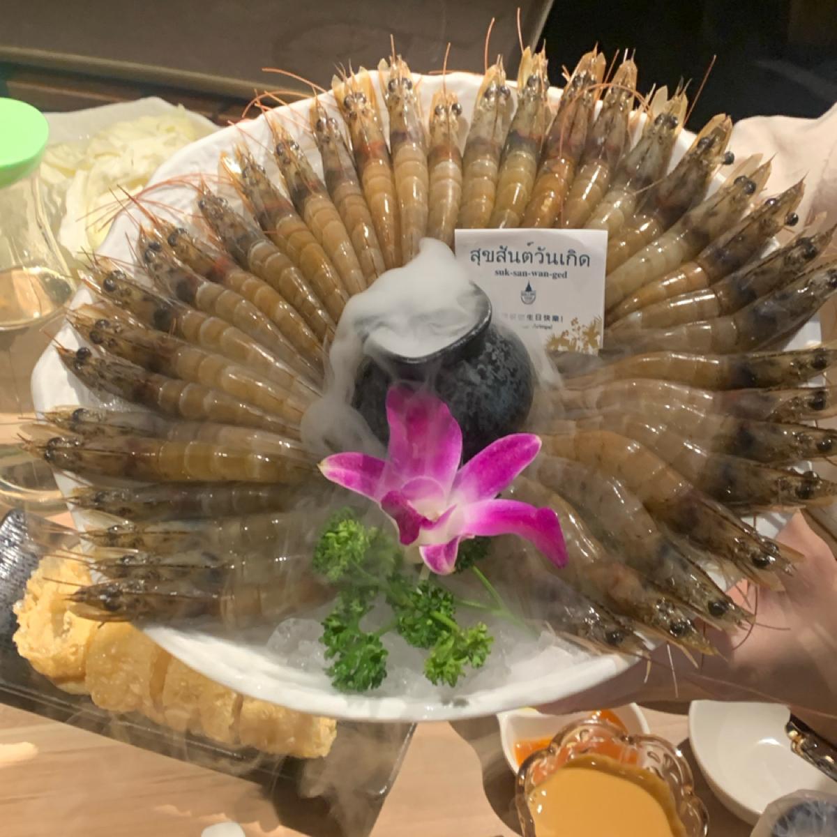 本月的生日禮竟然是幾歲送幾隻蝦,頭一次想承認自己的年紀(但有規定單點要超過2000元),當日選了經典的冬蔭功跟檸檬香茅,然後朋友極推泰拳🦐餅、豬牛雙拼大肉盤、水蓮、3秒玲玲卷、豆皮、油條、漫活野蔬拼盤、蝦滑跟泰奶塔😁