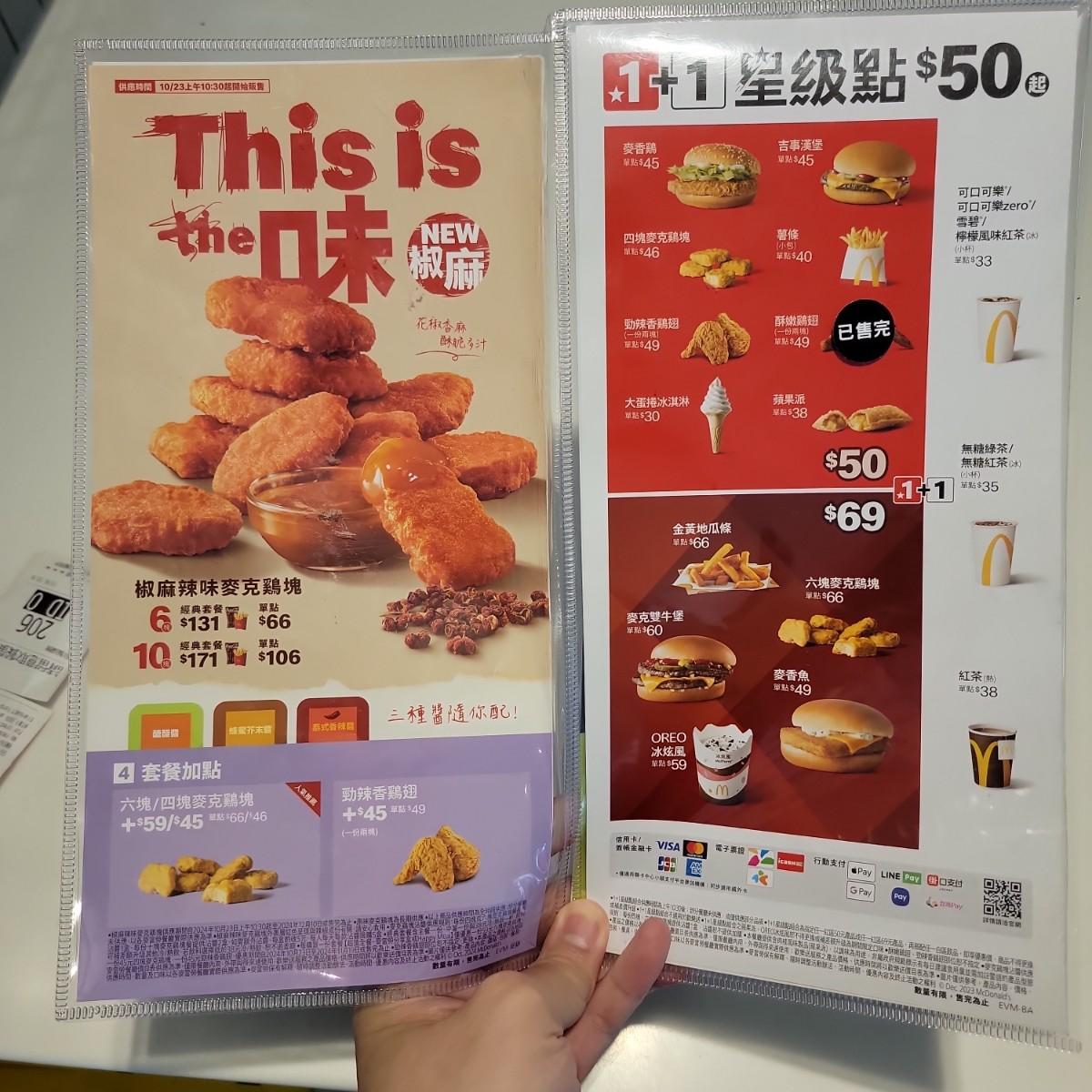 勁辣雞腿堡套餐+蜂蜜奶茶+大薯 $184,單點大麥克 $75