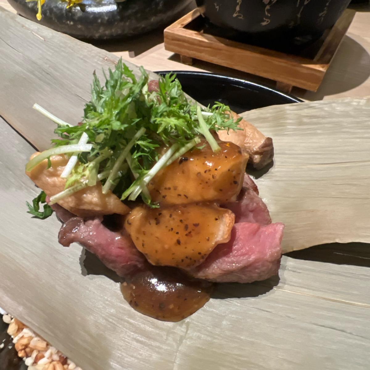 另一份我們選擇了極上套餐,裡面就有和牛。老實說,當和牛端上桌時,外觀看起來油花還算漂亮,但吃進嘴裡卻沒能達到預期的驚豔感。油脂的香氣、肉的甜度都不太突出,應該不是高等級的部位(可能連等級都不算高),比起在日本吃到的 A5 沙朗,落差還是挺大的。不過藝奇菜單上也沒有寫出等級跟部位,所以跟期待的有落差其實也很正常。和牛炊飯也中規中矩,不難吃但也記不住。