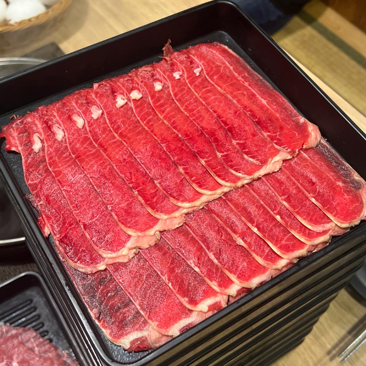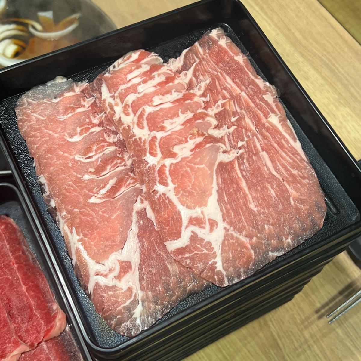 點餐方式是掃碼手機點,肉盤一次都給得滿大一盤,看起來很爽但實際上……肥肉比例接近一半,真的太油了,肉質也不特別,普通而已。