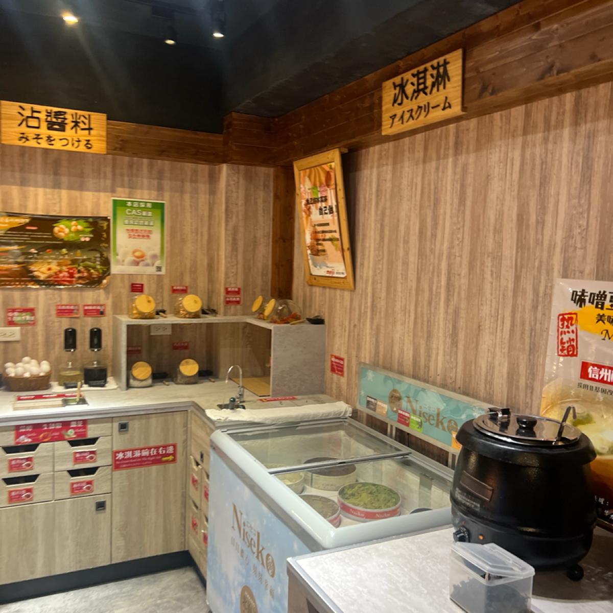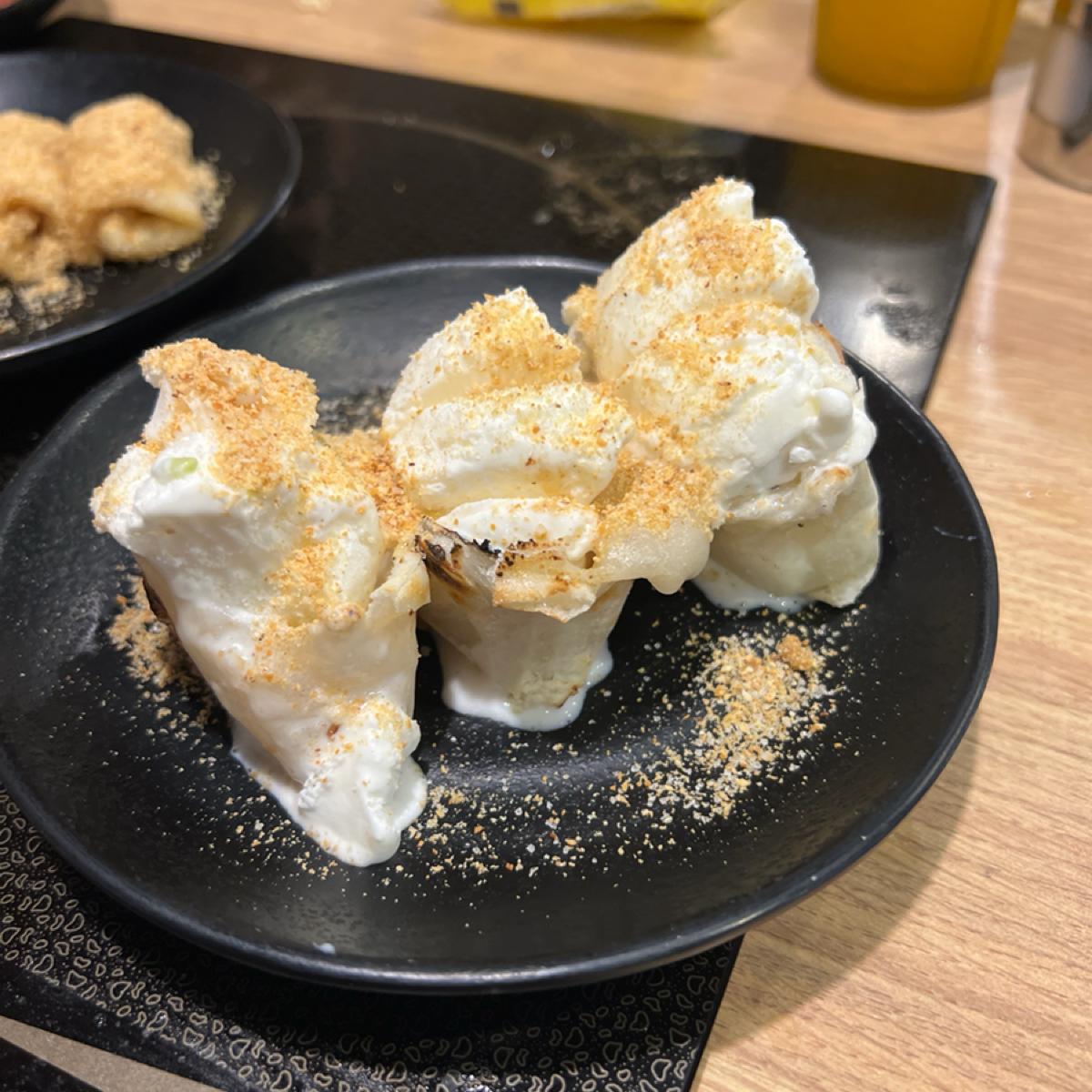 自助吧蔬菜很多,還有炸物、熱湯、冰淇淋,算是蠻豐富的。飯後會送上桌邊甜點:花生粉麻糬跟烤麻糬冰淇淋,麻糬表皮有烤脆,甜而不膩,這點蠻加分的。