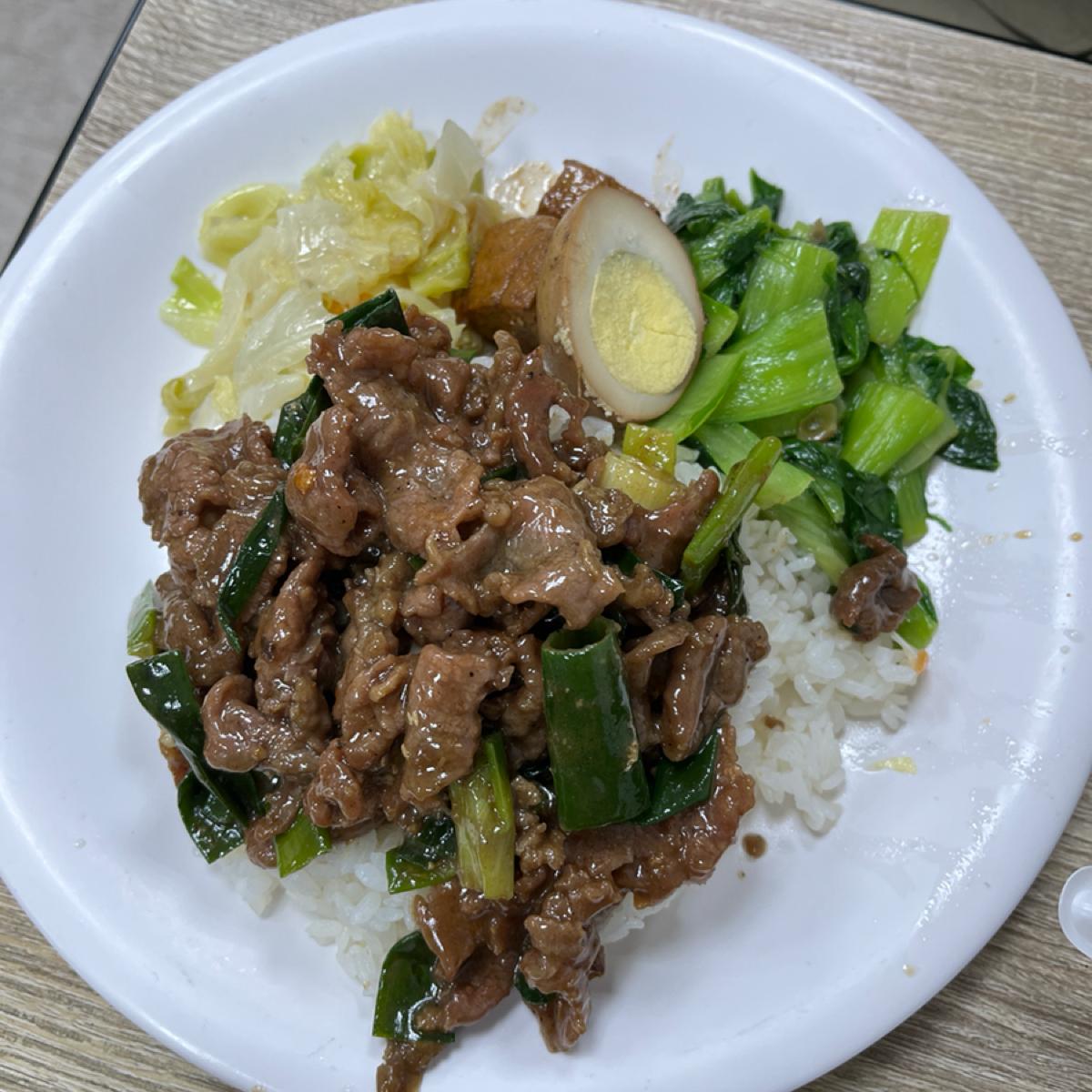 蔥爆牛肉肉飯$120 ,有附上配菜,配菜給得很大方,蔥爆牛肉也相當有味道好吃,很下飯,整體來說蠻好吃的。