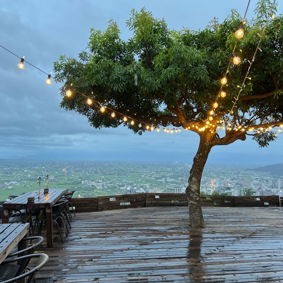 在礁溪山坡上的空ㄟ農場是一個令人心曠神怡的夜景聖地。從餐廳的位置俯瞰,可以欣賞到壯麗的宜蘭夜景,如果是下午來當然還有龜山島可以看喔。今天雪綿羊是在傍晚6點左右抵達,風景真是美得沒話說,璀璨的城市燈光點綴著天際線,令人目不暇給。