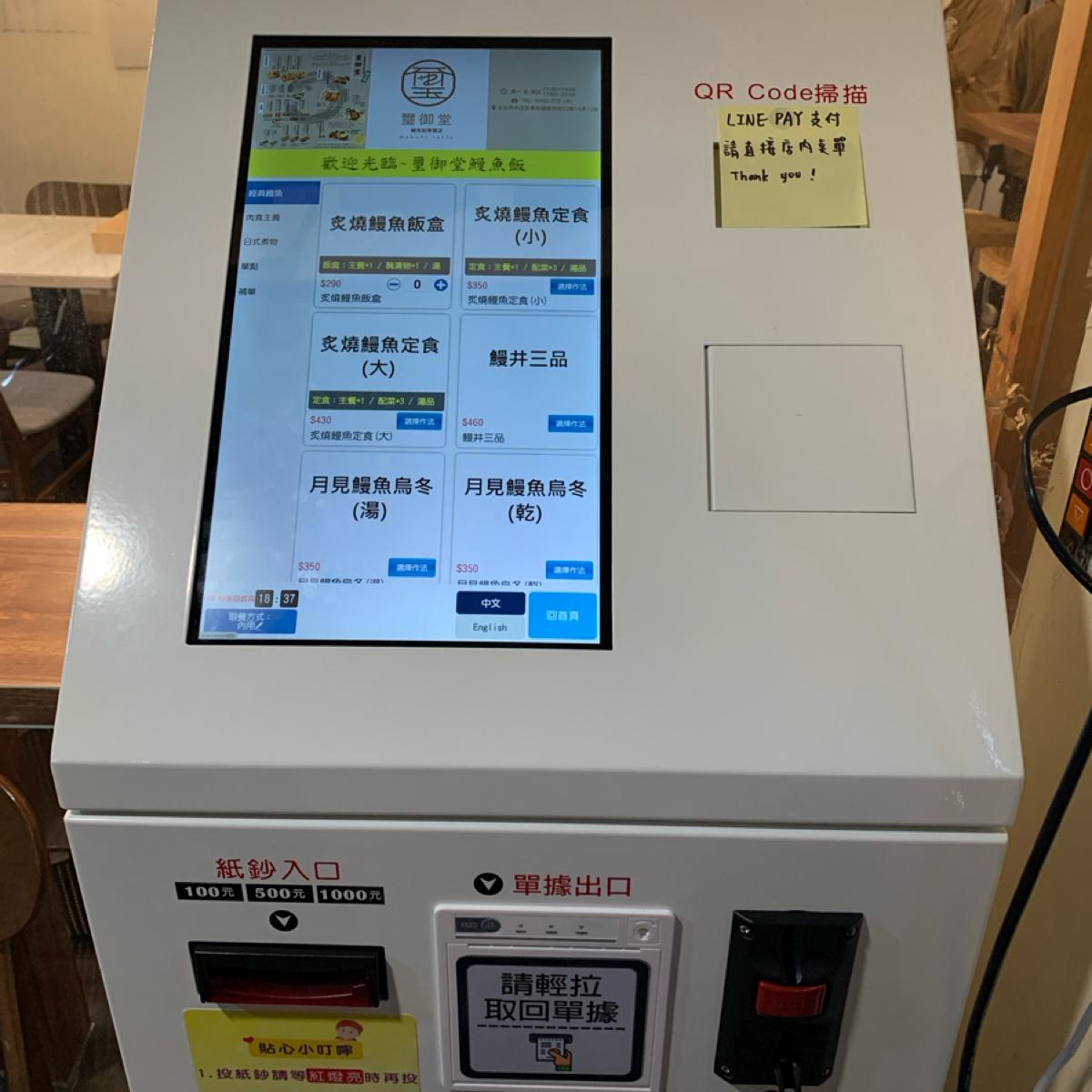 在公館一帶路過,看到主打鰻魚飯的日式食堂,甚至得用店外的點餐付款機。