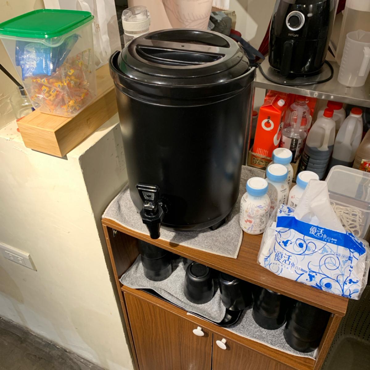 內用可自取常溫茶,定食亦提供蘋果醋與台式小菜。店內播放的音樂,也都是華語流行音樂。