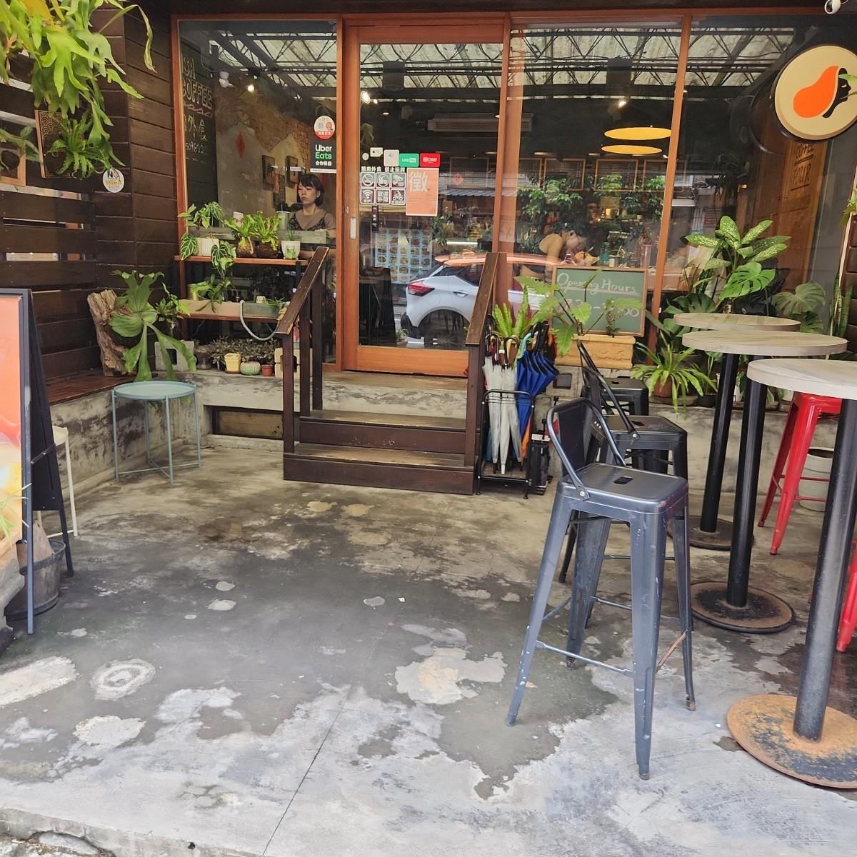 隱身在靜巷裡的連鎖咖啡廳 室內用餐區空間不大 但是個蠻舒適的用餐環境 也有戶外座位用餐區
