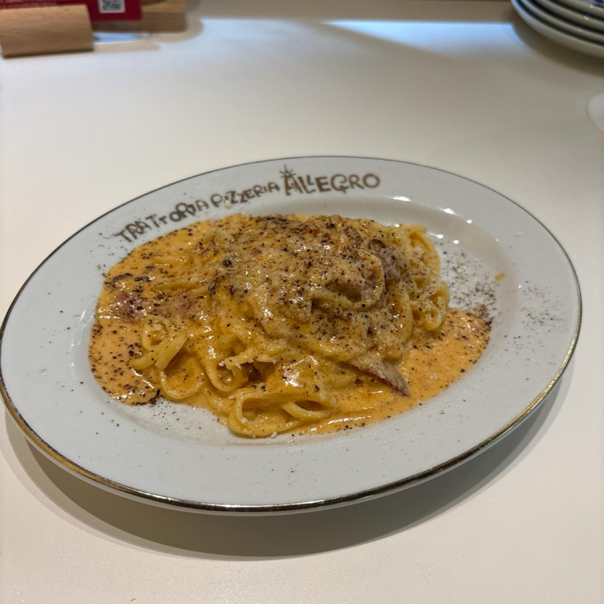 Q彈的意大利麵裹著大量的蛋醬,濃厚又稍微帶點辣,非常好吃🥚