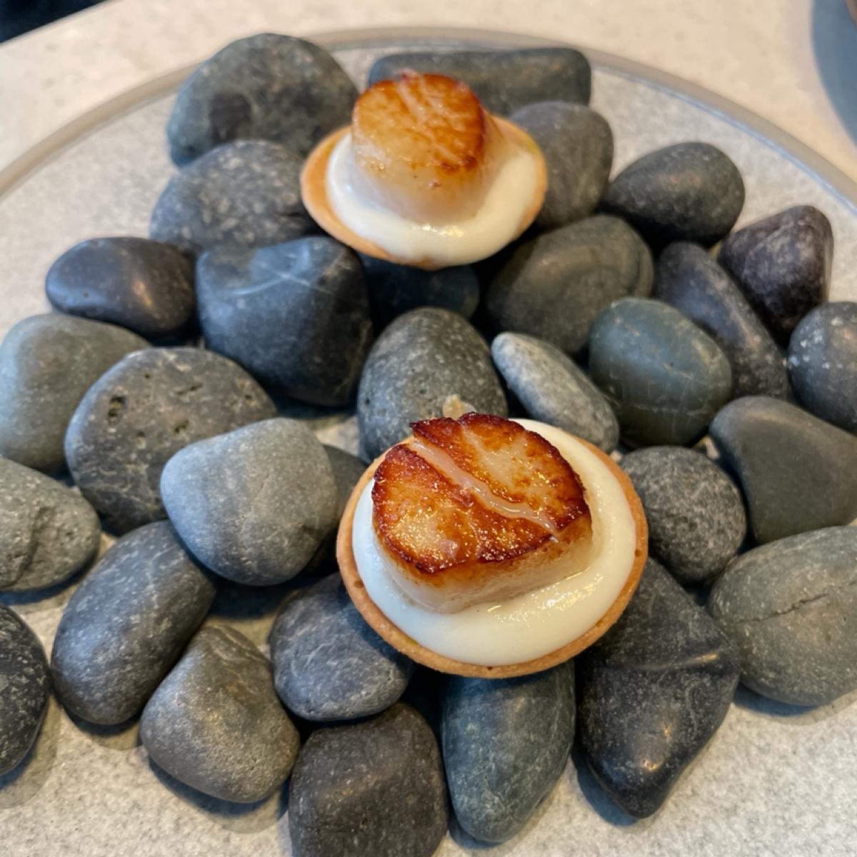 原本這道是胭脂蝦和番茄,因為我們兩個都不吃蝦和蕃茄,所以幫我們換成了換成章魚和柑橘,搭配澳洲Ricotta起司(店員說有蜂蜜風味 但我沒吃出來);一入口的味道有點嚇到我,吃起來是一股香茅味(但友人說沒有香茅味,食材裡也的確沒有香茅),我不愛香茅,所以這道不是我的菜