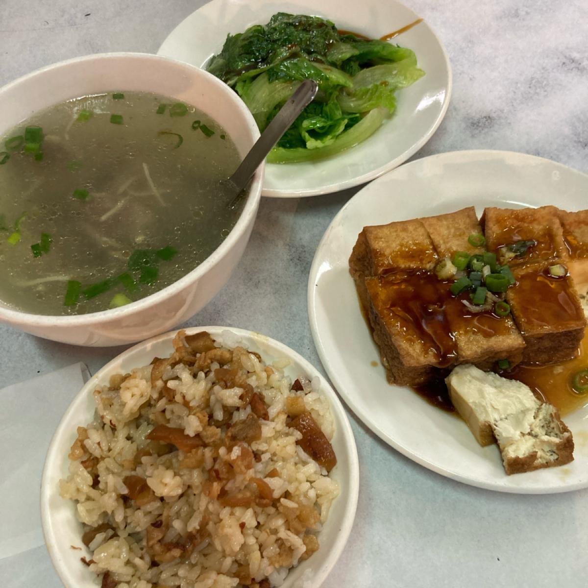 魯肉飯的魯肉好吃又香,可惜飯偏濕。也可以點米粉湯或乾意麵,印象中不錯吃,朋友也愛吃這家的乾意麵。