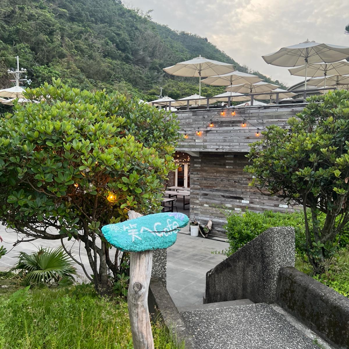 這家店藏在南方澳內埤海灘旁邊,前身是海巡哨所,改裝後變成海景咖啡廳,有點像山裡版本的空ㄟ農場。整間是木造建築,坐露天區可以直接看海,黃昏的時候燈串亮起來,蠻美的。