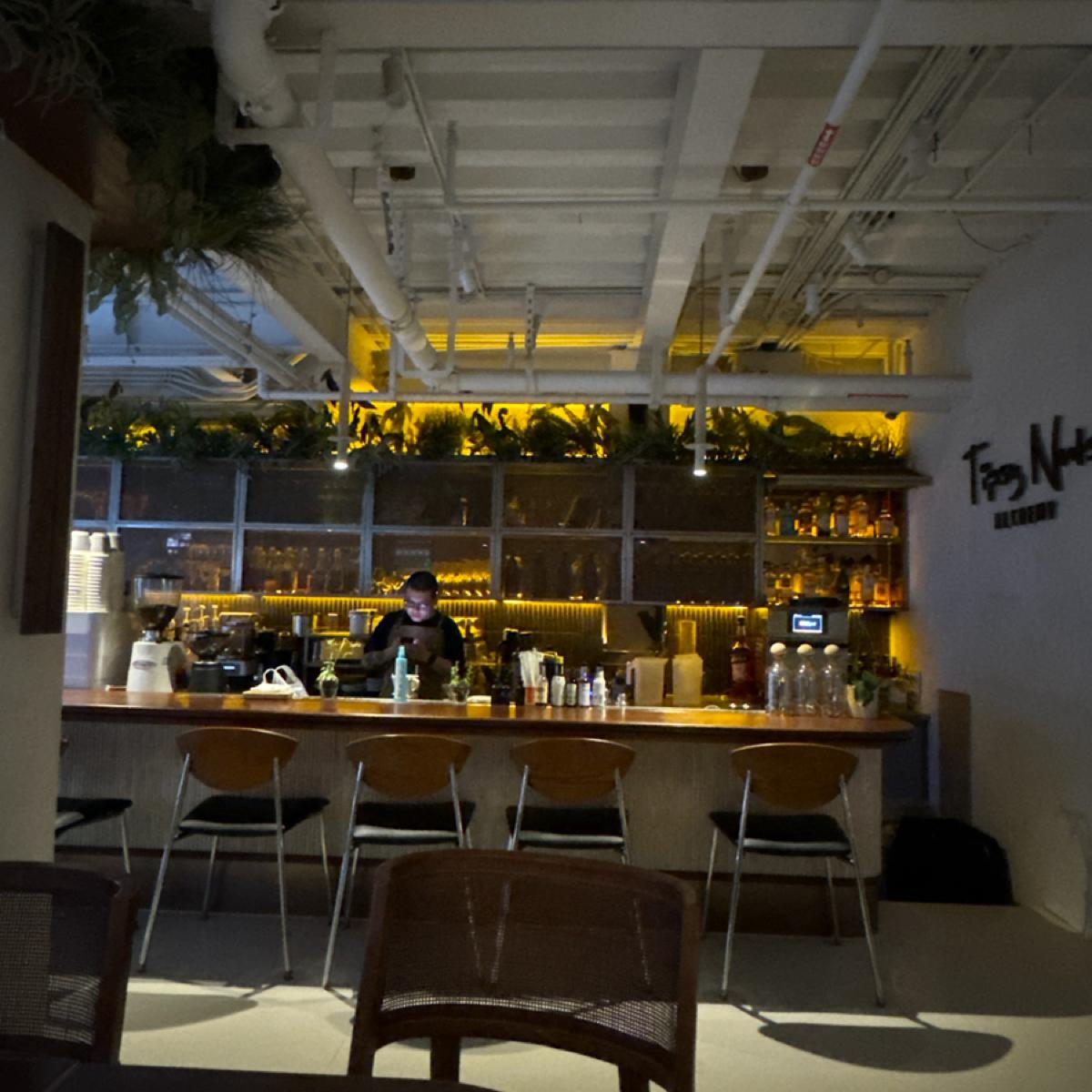 我們來的時間正好是咖啡與酒吧轉換的時間,所以我們從白天等到黑夜XD