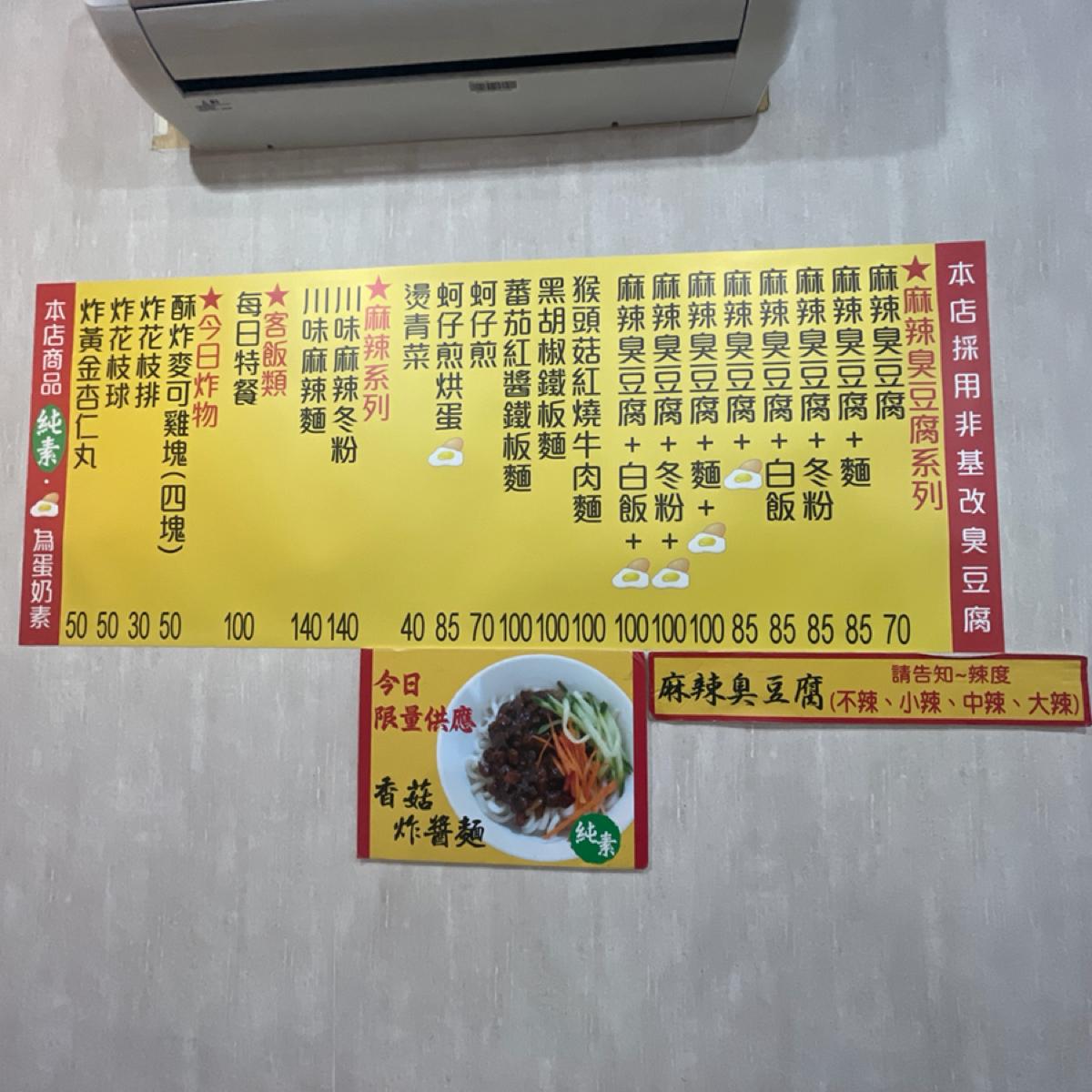 其實這邊是一家販賣素食料理的店,不只有麻辣臭豆腐喔,也有香菇炸醬麵、蚵仔煎(當然不會有真的蚵仔)、素的炸物等等