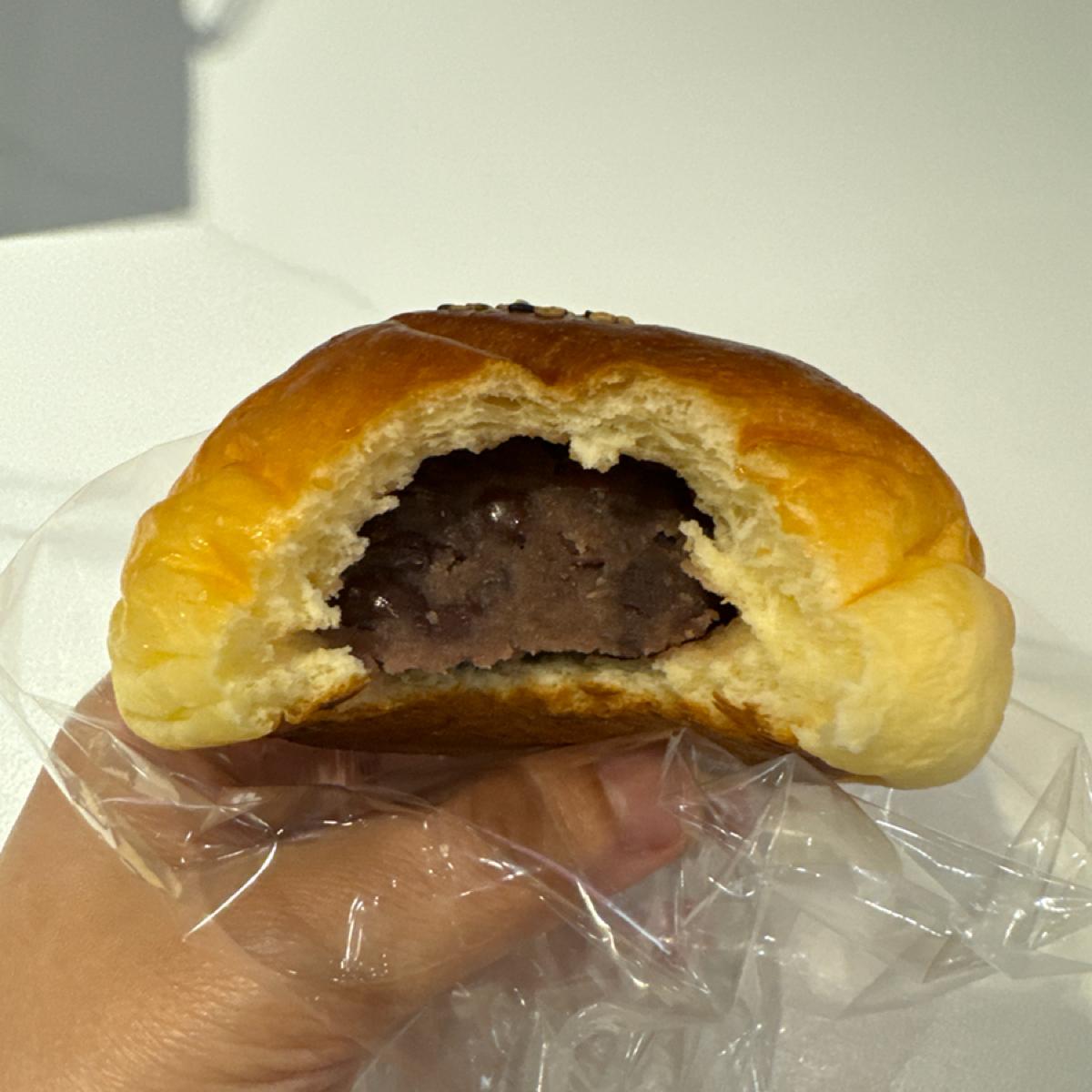 麵包小小一顆,淡淡的麵包香,搭配綿密的紅豆餡,紅豆泥是新鮮又吃得到顆粒的那種,是好吃的紅豆麵包,不過整體吃起來,甜度稍甜一些些,大概是五分糖的甜度~